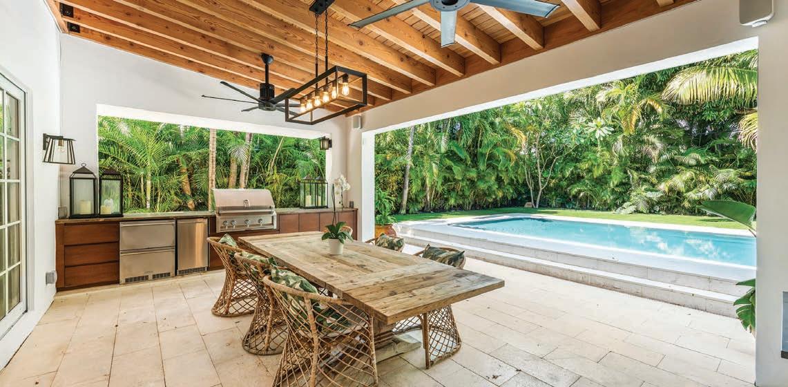 This completely gated, private oasis was seamlessly upgraded with new exterior and interior painting, new synthetic grass and landscaping, and Smart Home technology. The residence features a new open gas kitchen, new impact windows and doors, carport with garage door, and new A/C and electrical. Enjoy a terrific layout, porcelain tile and wood floors, impressive great room with fireplace, wine storage, bedrooms with custom closets, including primary suite with terrace, and Florida room with sliding doors that completely recess. Step outside and fall in love with your new terrace with covered summer kitchen, recently redone PebbleTec heated resortstyle saltwater pool, shower, and gorgeous mango trees.