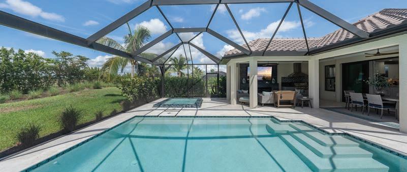Discover this pristine retreat in the sought-after Esplanade Lake Club, offering ultimate privacy on a lush tropical lot. This Florida lifestyle home has it ALL! Open-concept layout with a beautiful kitchen offering white shaker-style cabinets, quartz countertops, a gas cooktop and breakfast bar. Outdoors, enjoy the travertine pool deck, custom, heated saltwater pool, spill-over spa and a spacious lanai with a gas grill, 85” TV, fireplace and ample dining and lounging space. The master suite features dual vanities, a glass shower, walk-in closet and bay windows overlooking the pool. Guests and family will appreciate the two spacious en-suite bedrooms. Additional features include a media room/home office, custom window treatments, luxury vinyl flooring, custom woodwork, a large laundry room and a tandem garage for storage. Esplanade Lake Club on Lake Como offers world class amenities such as a resort-style pool, lakefront beach, fitness center, restaurant/bar, tennis, pickleball, bocce courts, dog parks, boating and walking trails. Embrace the Florida dream in this exceptional home where luxury meets natural beauty and vibrant community amenities.