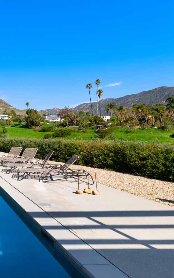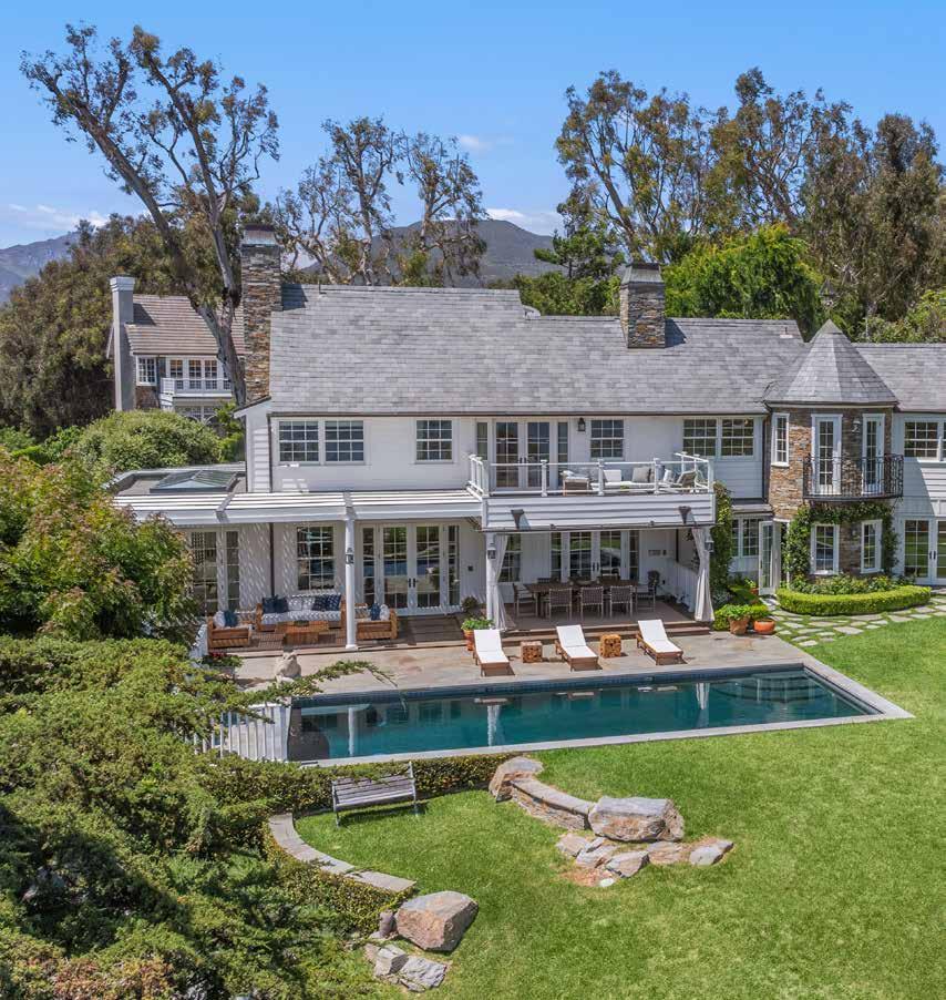 With loads of privacy, sweeping canyon and mountain views, and ample room for indoor/outdoor living and entertaining, this Malibu Park compound combines the bright, open feeling of mid-century style with a casual surf-ranch atmosphere. Located above Zuma on a gated, approximately 1.46-acre cul-de-sac lot, the property has a main house, a detached guest house, a pool house, a separate gym, a pool and spa.
