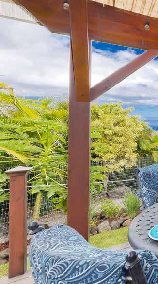 Enter the property through the wrought iron gate with lighted lanterns atop the rock pillars. Green lush lawns & tropical foliage guide you to a welcoming entry to a very attractive single level home for your Hawaiian style living. Property is partially fenced & includes a gate to the lower property. Lots of parking for your boat, trucks & toys. A Light & airy open living area with sliders to the spacious lanai & ocean views. Enjoy sunsets & al fresco dining on your Lanai with trex decking. New luxury vinyl flooring & tile in the kitchen & baths. Fresh paint throughout, a new roof installed in 2020. The kitchen features a tropical wood breakfast bar, gorgeous granite countertops & backsplash. Stainless appliances. A Conveniently located laundry area off the kitchen with side-by-side W/D. The ensuite is located at the south end with a slider that opens onto the gardens. The 2 west bedrooms share a full guest bath. Both guest bedrooms have sliders that open to a lanai with ocean views. Home is clean & pristine, move in ready. A magnificent Banyan tree adorns the south side with shady paths & a sanctuary for birds. New features include: Owned solar system w/battery back up with an EV charger in covered carport, 3 AC splits, new driveway, fencing for your children or pets, new flooring, new stove, new hot water tank, new kitchen sink and faucets. Located at approximately 900 ft elevation, the sweet spot for cooler temps and makau showers. Conveniently located near the airport, shopping center, and beaches. The 2 gated entries offers flexibility for adding another possible dwelling, orchard, raised gardens & Kona Coffee adding to the property’s versatility and value. Charming, well-equipped property combines modern amenities with natural beauty. An opportunity for those seeking a comfortable and inviting living space in a desirable location.