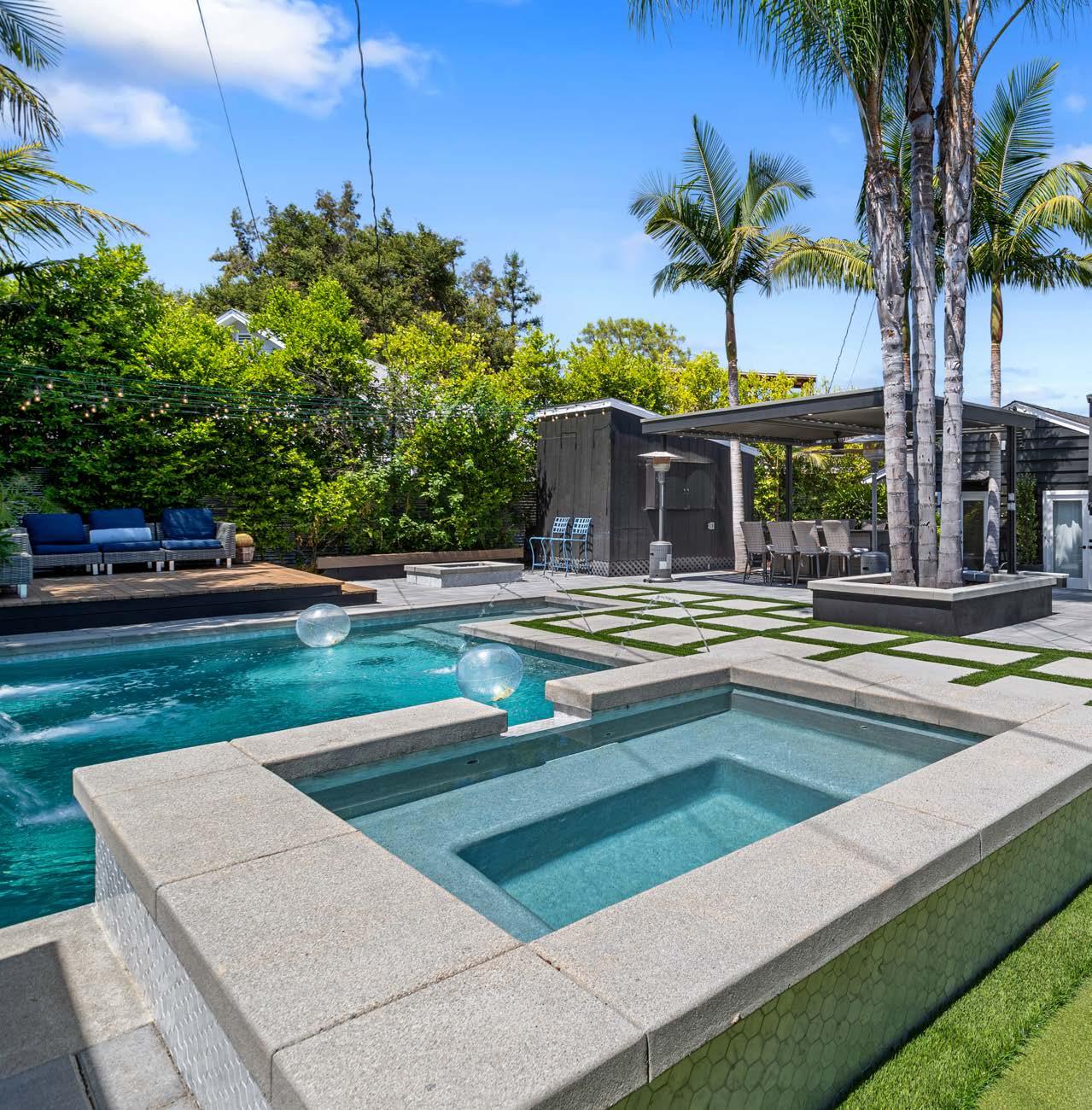 Welcome to 1603 5th Street, a stunning residence in the heart of Manhattan Beach, CA, where modern elegance meets timeless sophistication. This expansive near 4,700-square-foot home, situated on a generous 8,581-square-foot corner lot, offers an unparalleled living experience with five spacious bedrooms and four and a half luxurious bathrooms. This large and private corner lot provides a sense of tropical bliss mix with maximum entertainment opportunities. As you step inside, you’ll be greeted by freshly painted interiors and refinished solid Brazilian cherry hardwood flooring that exudes warmth and refreshment. The brand-new carpet adds a touch of comfort and softness to the living spaces upstairs. The open-concept design seamlessly connects the living areas, creating a harmonious flow perfect for both entertaining and everyday living. The gourmet kitchen is a chef’s dream, featuring a cozy breakfast nook, a butler’s pantry, and ample built-ins for storage. The primary suite is a private oasis with a walk-in closet and separate vanities, jetted tub, and offering a serene retreat at the end of the day. Outdoors, the meticulously and mature landscaped yard boasts a sparkling pool and hot tub, providing the perfect setting for relaxation and enjoyment. Additional amenities include a convenient washer and dryer amongst the bedrooms upstairs, air conditioning for year-round comfort, and ample parking with an attached generously sized 3 car garage. This exquisite home epitomizes modern luxury and sophisticated living in one of California’s most desirable locales.
