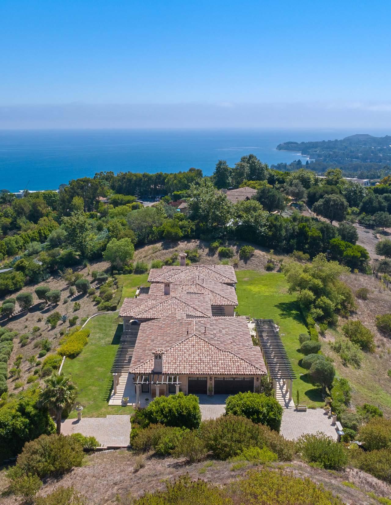With loads of privacy, sweeping canyon and mountain views, and ample room for indoor/outdoor living and entertaining, this Malibu Park compound combines the bright, open feeling of mid-century style with a casual surf-ranch atmosphere. Located above Zuma on a gated, approximately 1.46-acre cul-de-sac lot, the property has a main house, a detached guest house, a pool house, a separate gym, a pool and spa.