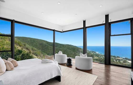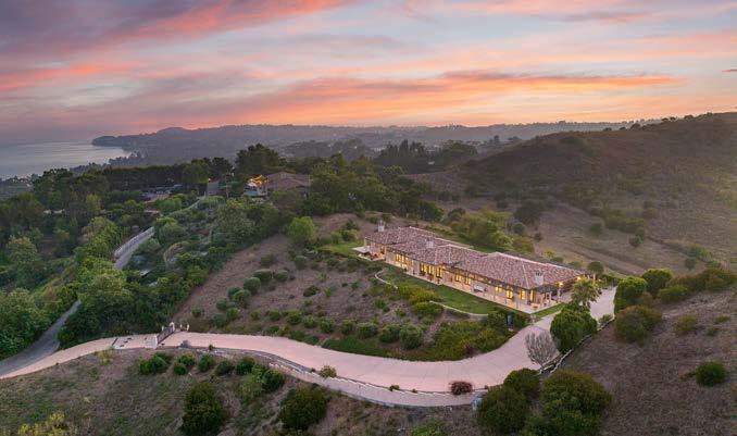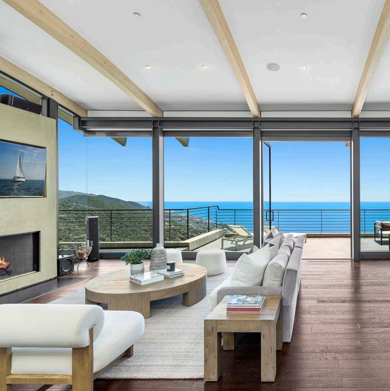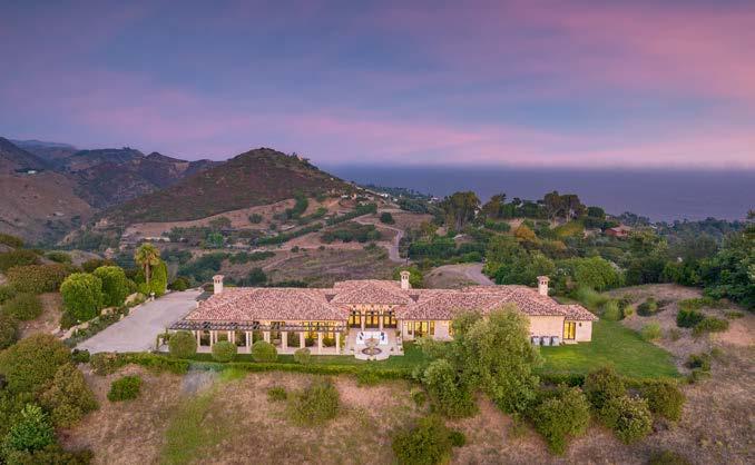 With loads of privacy, sweeping canyon and mountain views, and ample room for indoor/outdoor living and entertaining, this Malibu Park compound combines the bright, open feeling of mid-century style with a casual surf-ranch atmosphere. Located above Zuma on a gated, approximately 1.46-acre cul-de-sac lot, the property has a main house, a detached guest house, a pool house, a separate gym, a pool and spa.