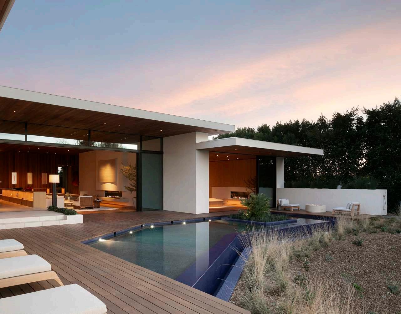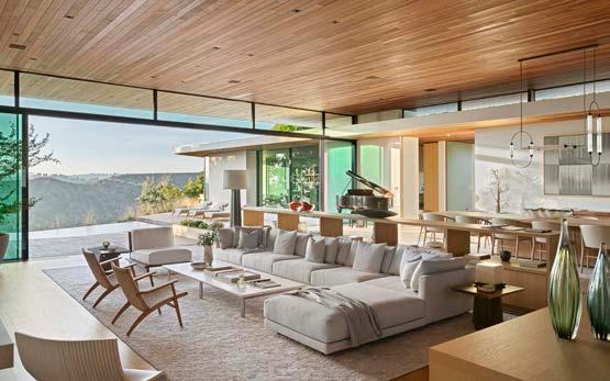 Perched in prime Trousdale Estates, this exquisite new construction single-story home offers 4 bedrooms, 5 bathrooms, and unparalleled canyon and city views. Designed to seamlessly integrate indoor and outdoor living, the residence features multiple courtyards that provide moments of tranquility amidst nature. The architecture showcases overlapping horizontal rooflines with extended overhangs, expanding the spatial dimensions of the home.