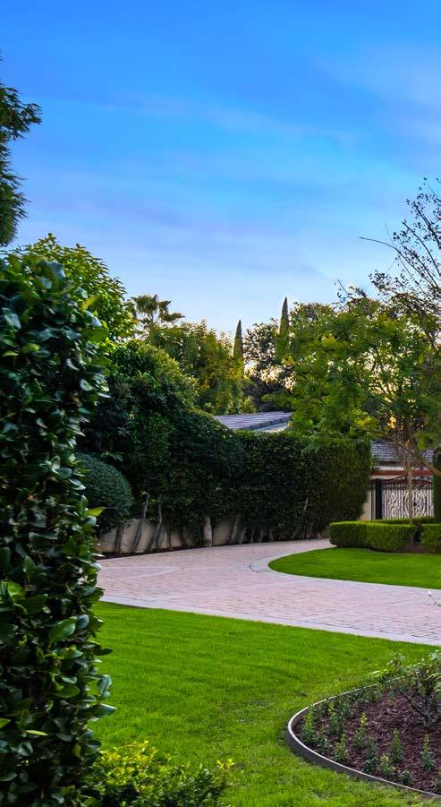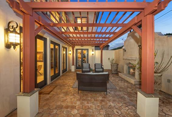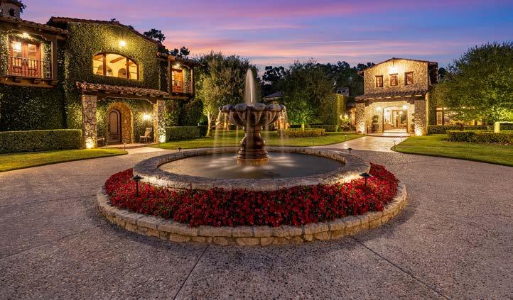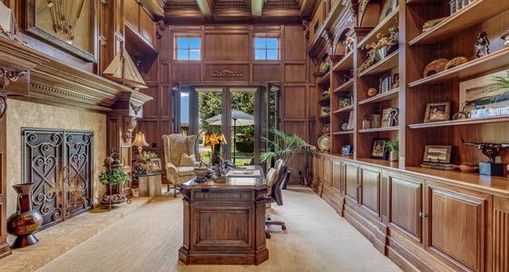 The estate grounds feature multiple fruit trees, an enormous pool, lush landscaping, private courtyard with a fireplace and a rear patio with a pool bath.