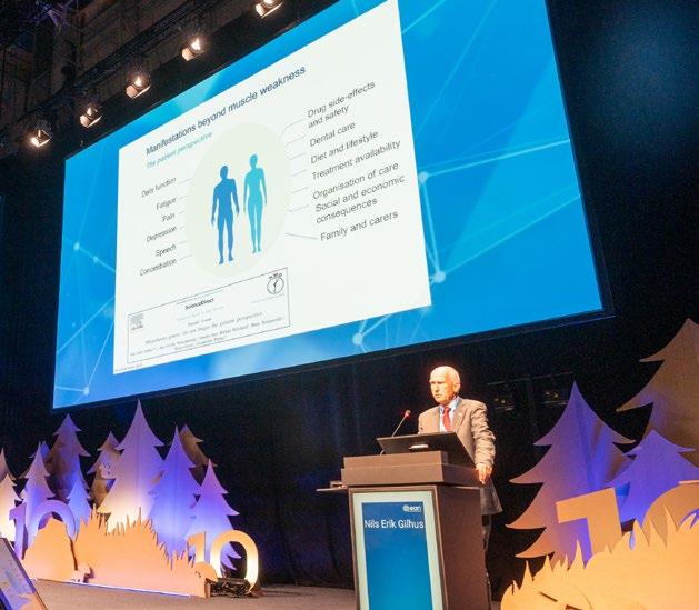 Finally, Prof. Nils Erik Gilhus, who received EAN honorary membership, gave the Moritz Romberg lecture on individualised treatment of myasthenia gravis, a condition where nerve-muscle communication breaks down. Symptoms include muscle weakness, double vision, drooping eyelids, and difficulty with speaking, chewing, swallowing, and breathing, often leading to depression. Prof. Gilhus stressed the need to balance standardised algorithms and personalised therapy. “Subgrouping patients according to antibody target and age at symptom onset remains the best strategy so far, but it’s not enough,” he said. He highlighted the need for biomarkers to better reflect patient subgroups for similar therapy responses and prognosis. “Finding such biomarkers would be perfect subgrouping. I’m sure we will improve.”