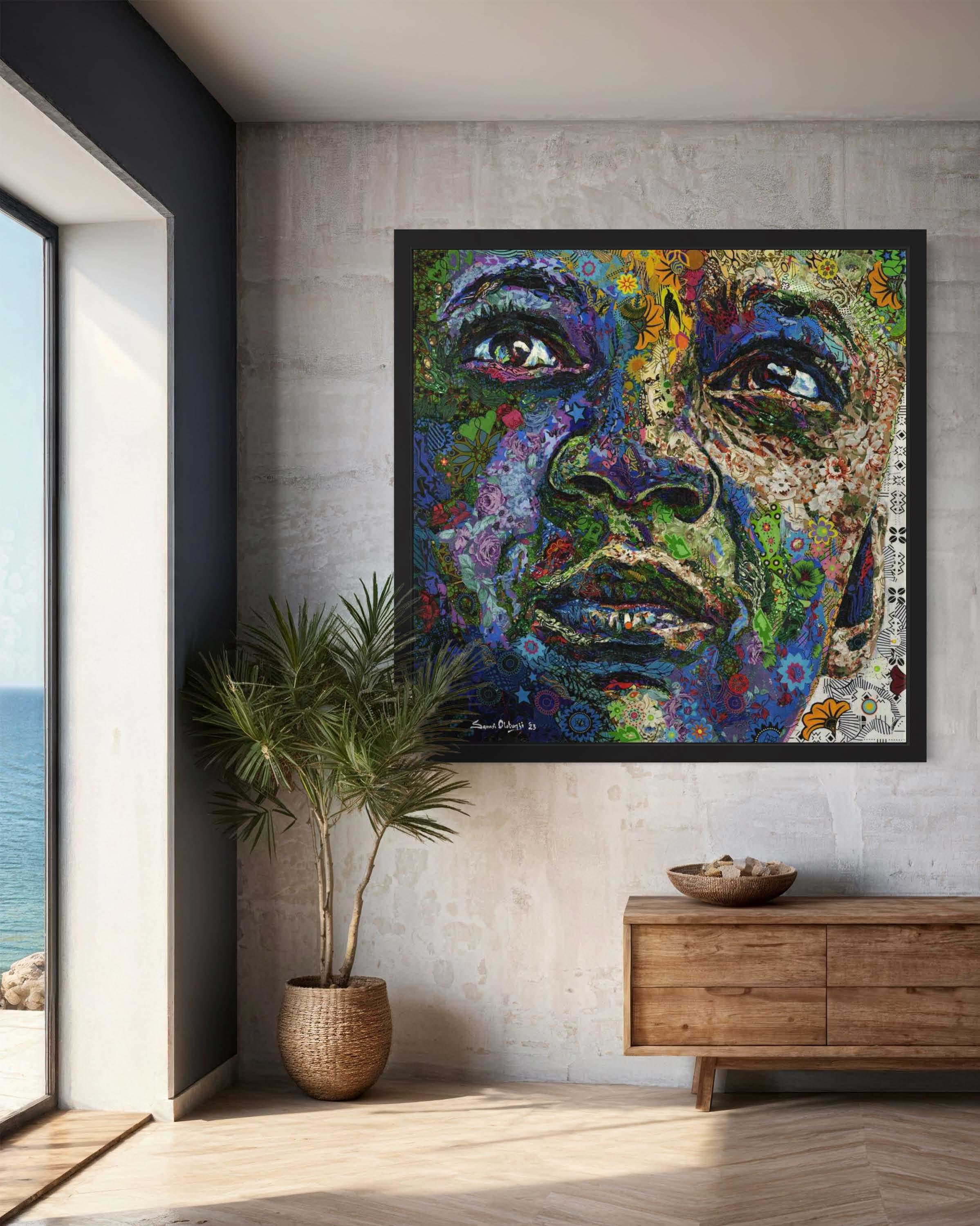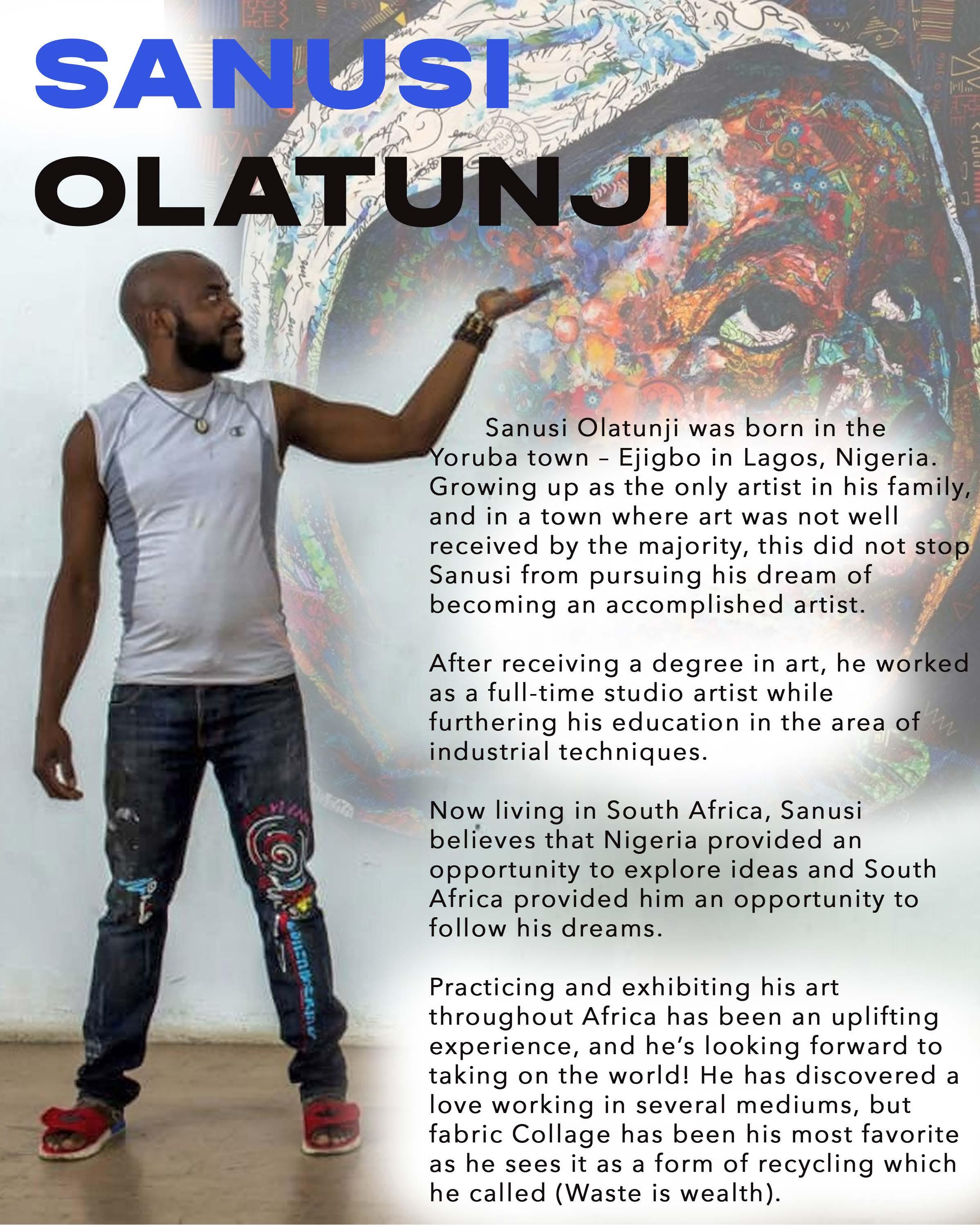 Practicing and exhibiting his art throughout Africa has been an uplifting experience, and he’s looking forward to taking on the world! He has discovered a love working in several mediums, but fabric Collage has been his most favorite as he sees it as a form of recycling which he called (Waste is wealth).