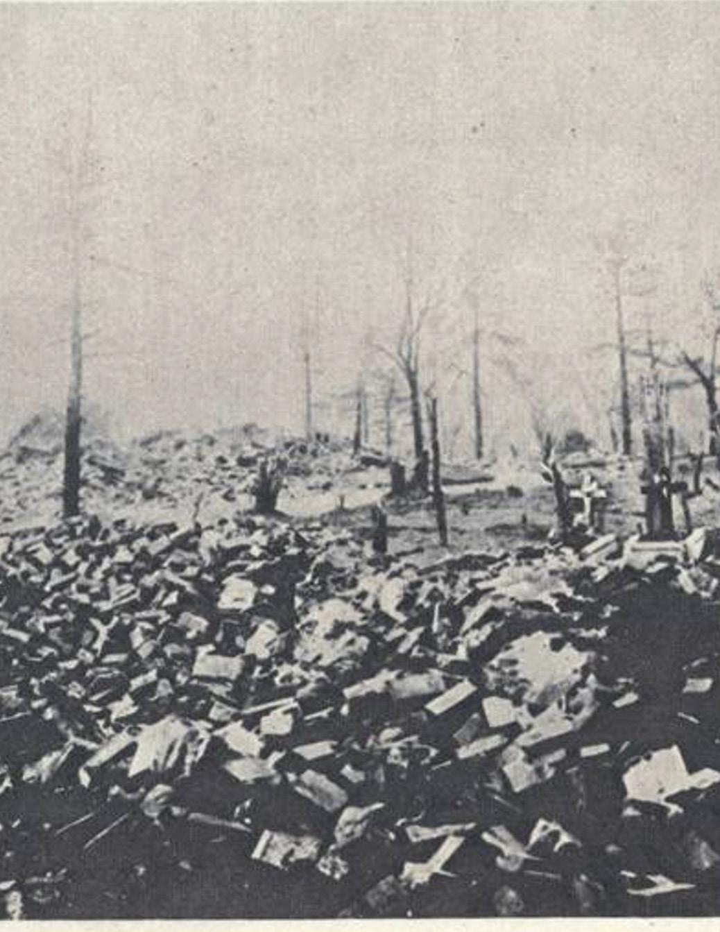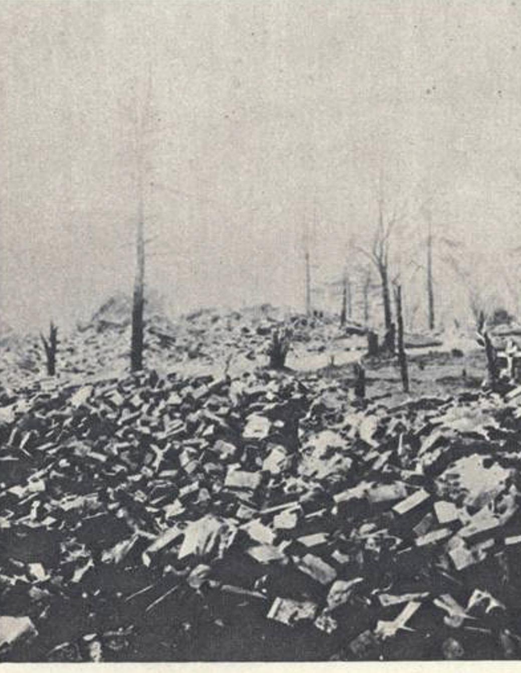 heard screaming and sobbing and begging for help. They seemed to be uninjured, with the exception of one girl who kept crying, ‘I have a great stone on my chest, oh please take it off.’ Without more workmen and tools to move the debris, we were unable to get to them. All we could do was to offer comfort, prayers, and encouragement while waiting for help. As the flames of the raging fires threatened to surround us, it became a matter of saving ourselves or perishing with them, so we were sorrowfully obliged to abandon them to their fate.”