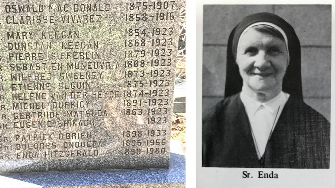Gravestone at Yamate Foreign Cemetery & portrait of Sister Enda.