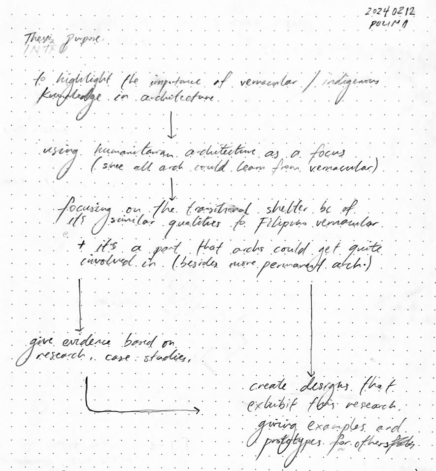 From Chapter 4 onwards, the research is brought together through mind maps and a design exercise of three structures that are inspired by the different attributes of Filipino vernacular, thereby demonstrating the connection between vernacular architecture and post-disaster recovery.