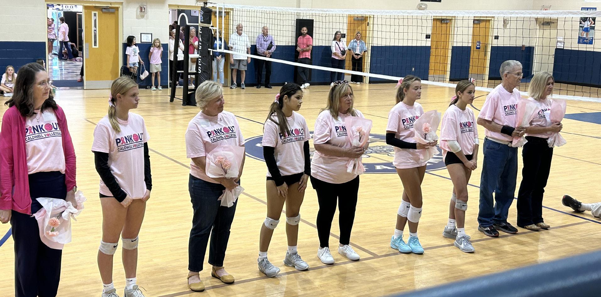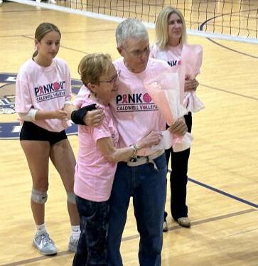 The Volleyball Team at Caldwell Academy held their Pink Out Game where they honored breast cancer survivors. They surprised Bob Black with a donation of $500 to earlier.org in his honor.