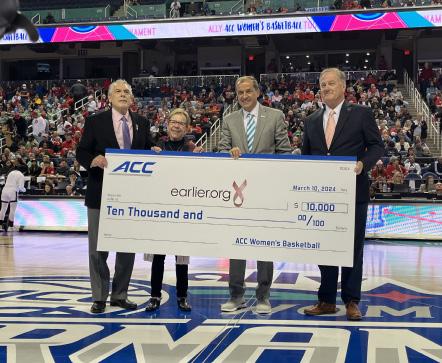 The ACC Women’s Basketball Tournament has shown remarkable generosity by partnering with earlier.org since 2000. The 2024 Tournament contributed a generous $10,000 to earlier.org and overall $13,500 was raised!