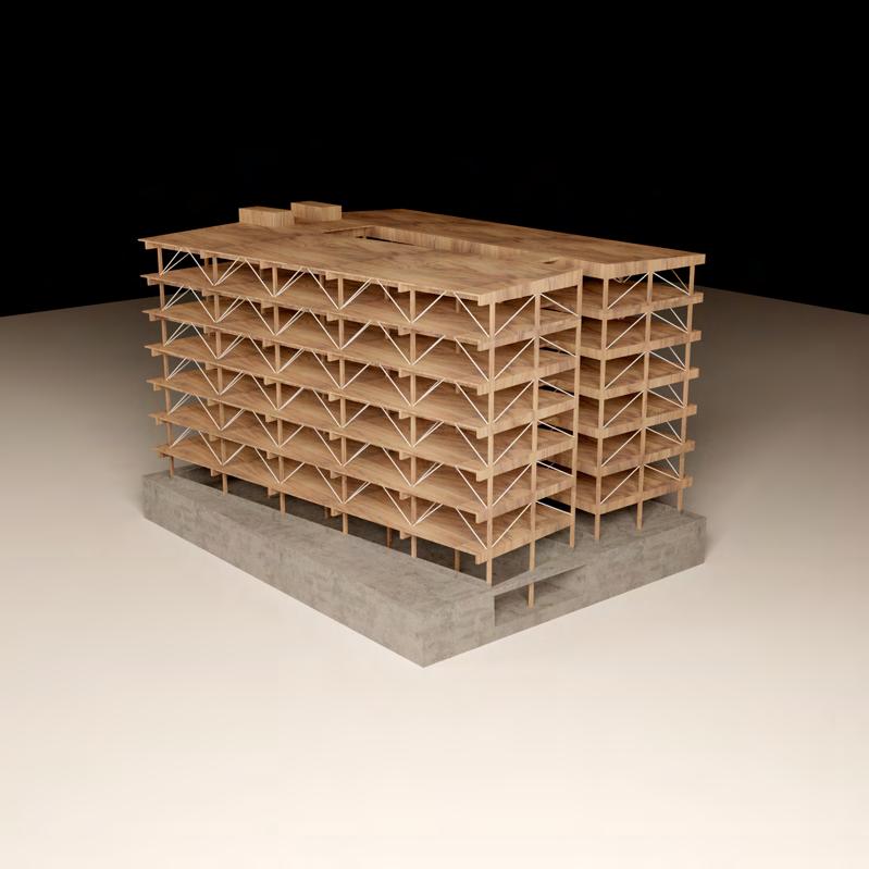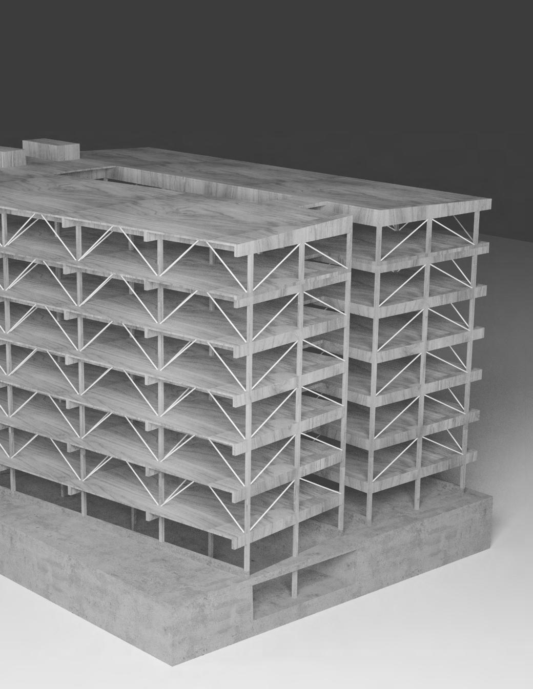 With this housing project being sited in Los Angeles, CA, part of the design was about creating a bracing system to address the horizontal loads of earthquakes while at the same time using the sustainable mass timber materials.