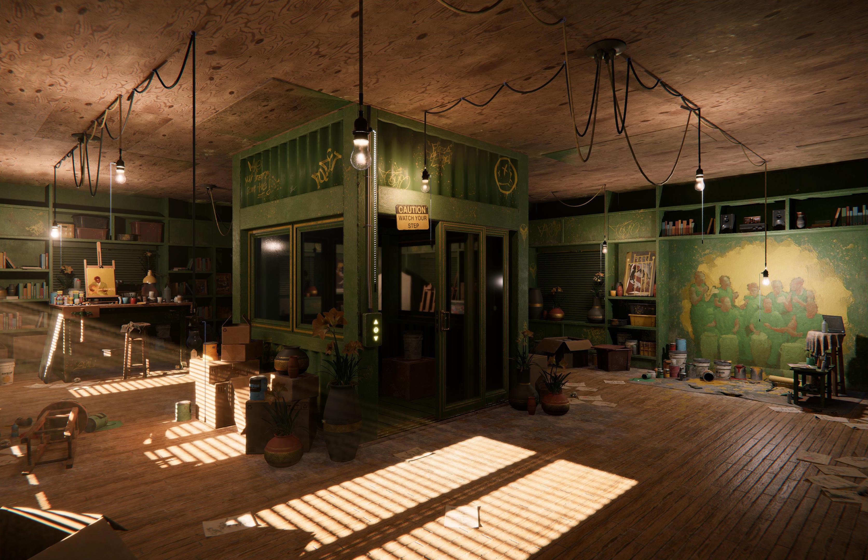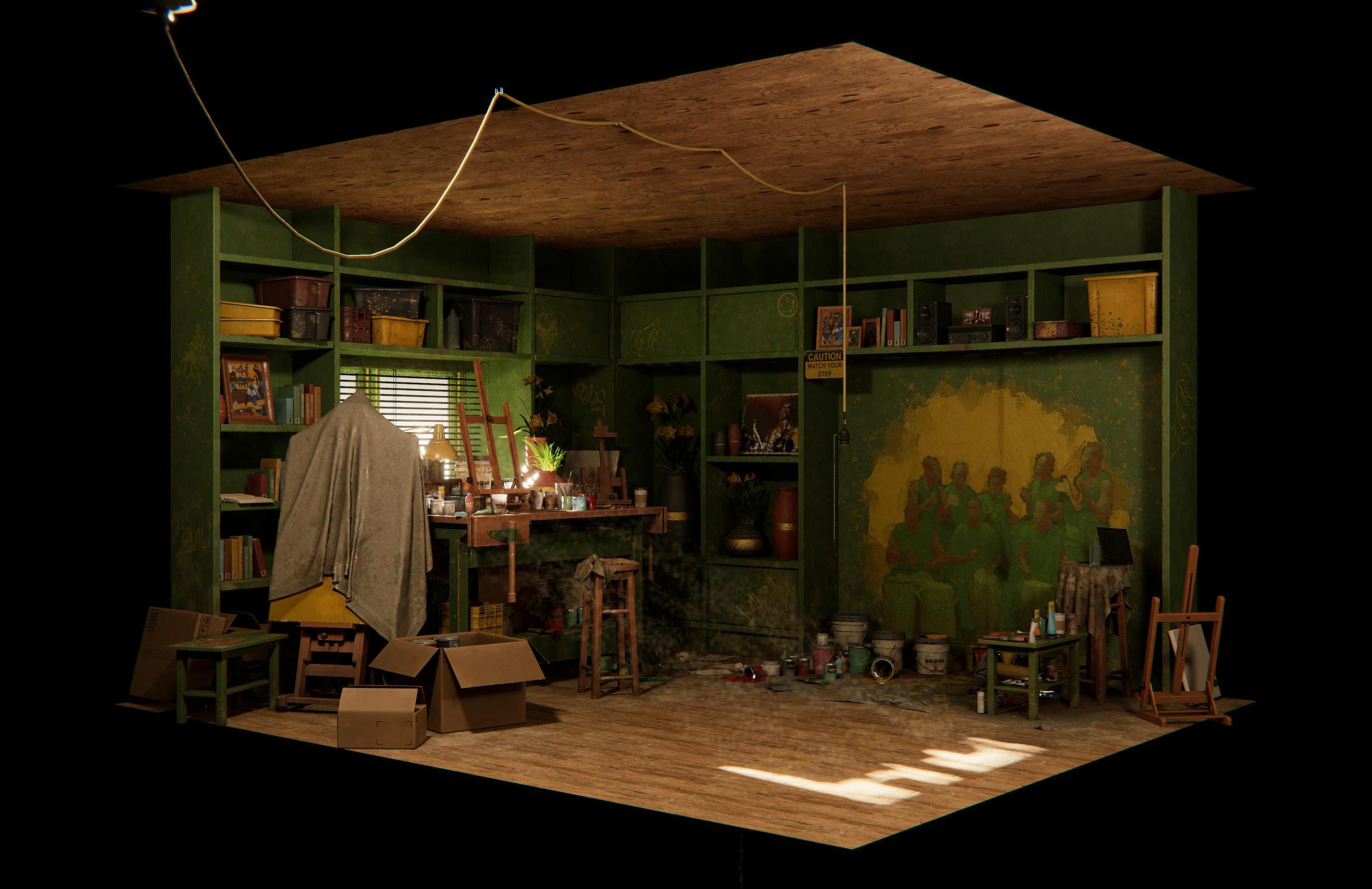 Smaller unique props are created with low to high poly baking and unique texture atlases from Substance Painter. Typically I would texture these assets in groups to use less textures.