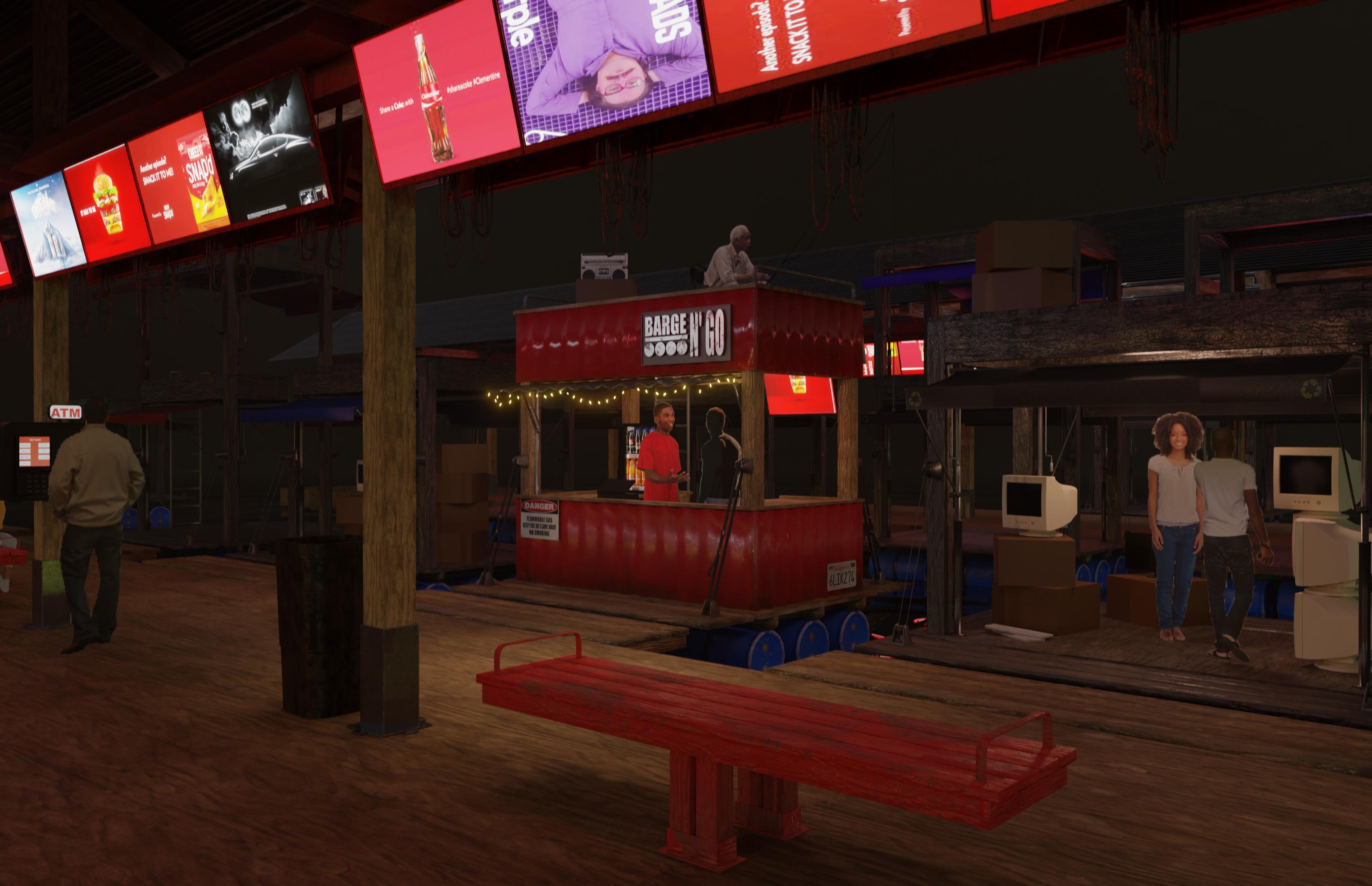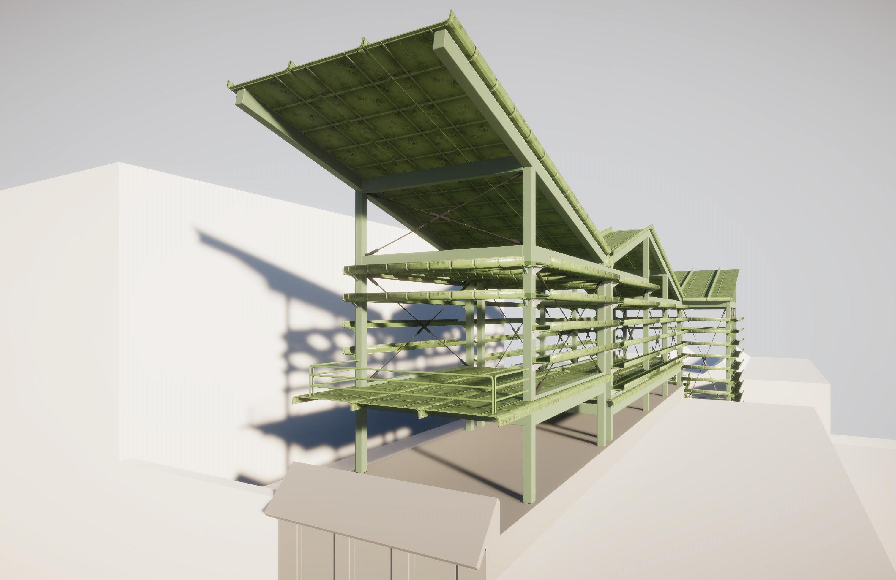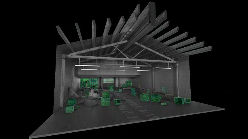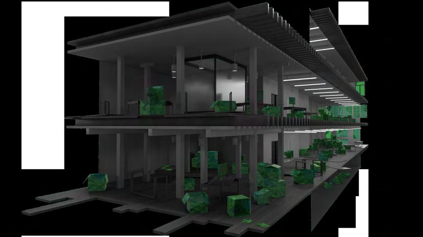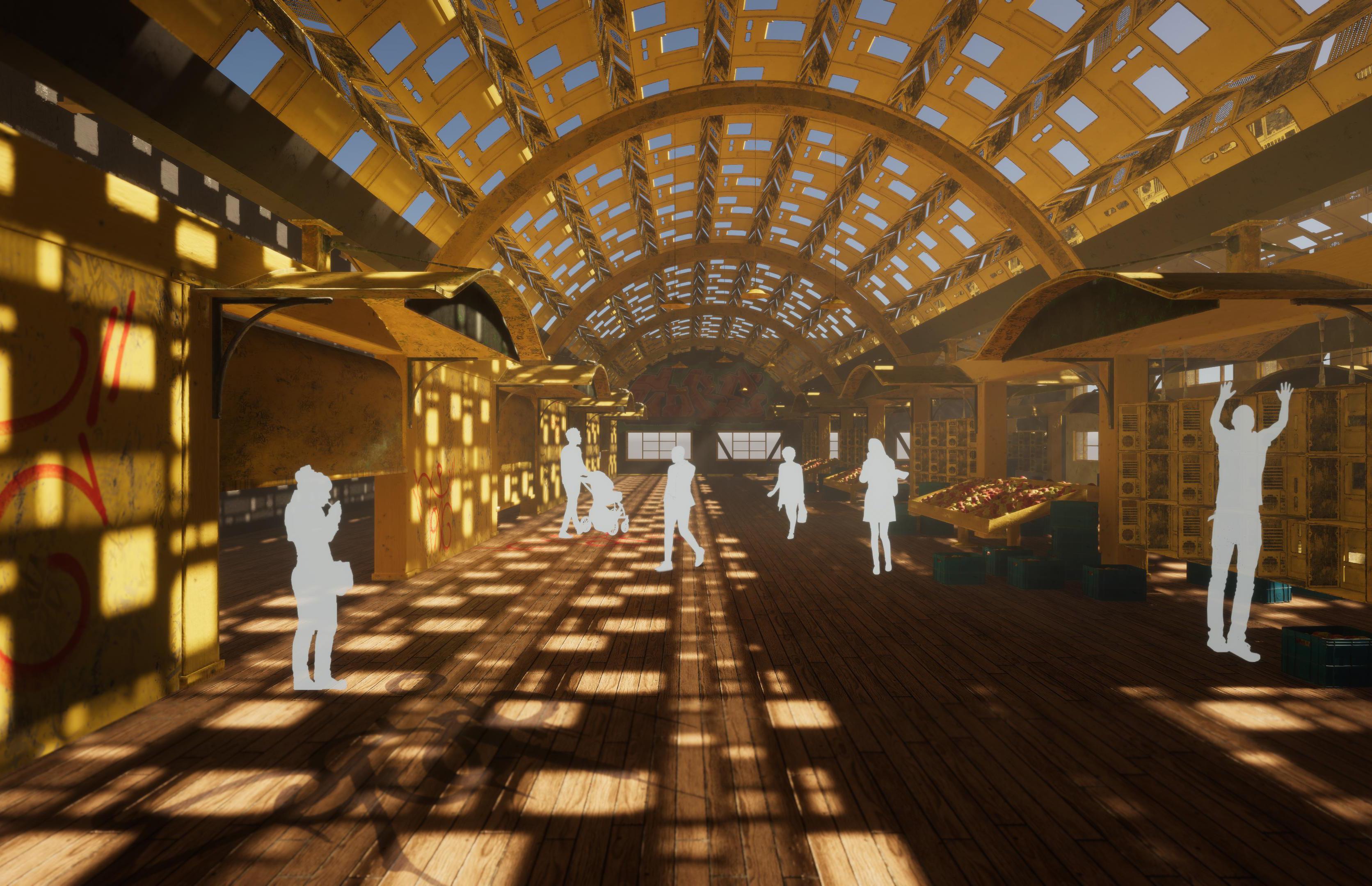 As a way to challenge the convention, I created small exploration videogame with a series of imaginative scenarios in which e-waste can be used to become the materiality to reuse of the office spaces. This example is a market constructed of vaults made of used computer cases meant to replace the roof of 2101 Mission Street.
