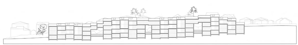 Long section through the a revised scheme of the housing project. Made by Dov Diamond.