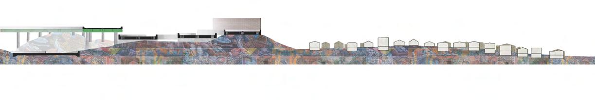 Section through the site and the adjacent highways. Primarily to reveal the scale and imposing nature of the highways.