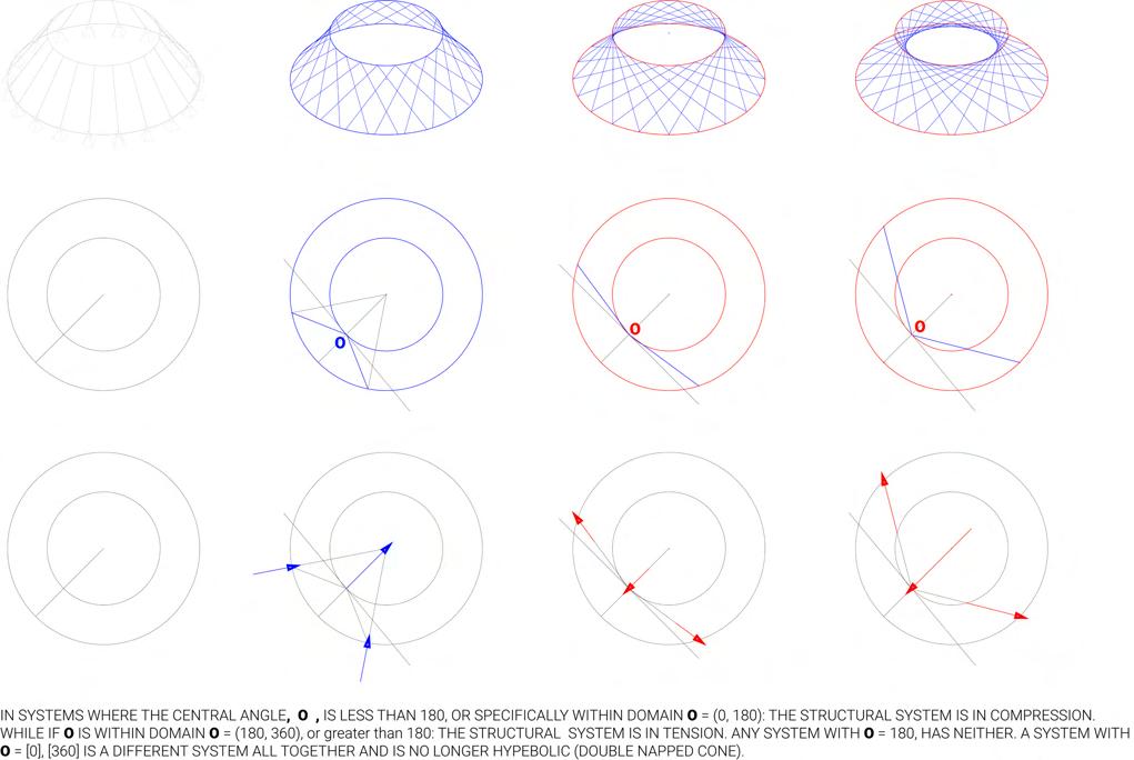 Fig. 1 - Diagram breaking down how the forces work within a hyperbolic gridshell