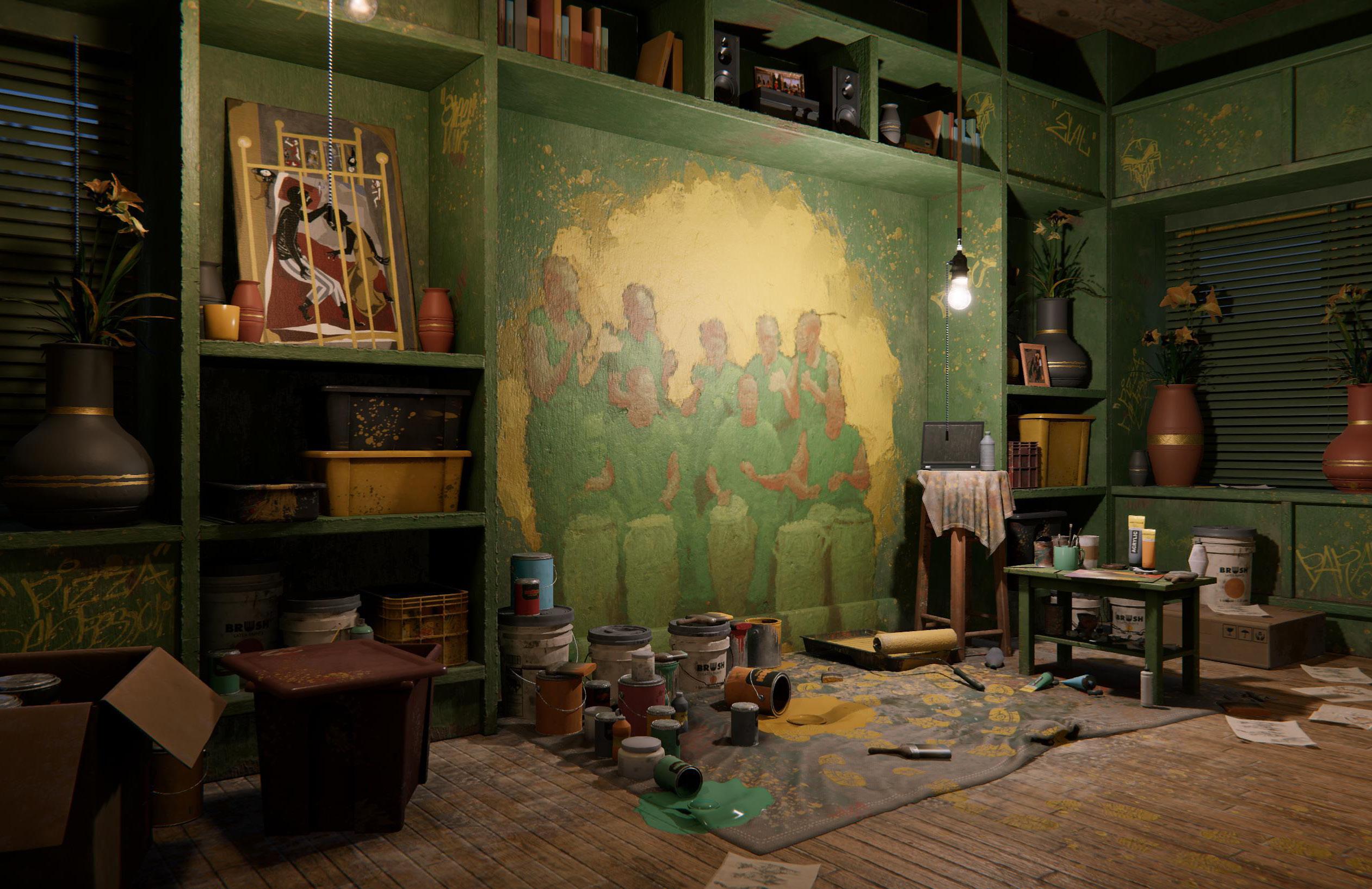 The pattern making aspects of Ghanian culture, which are highly prevalent in textiles and wood carving, were super inspirational for how to ground the scenes the game takes place in and to have some resonance with the traditions of the existing culture.
