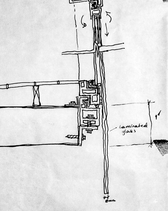 With all the design ideas in mind this became the final sketch that would be the way in which the windows on the front would be designed. They would open up eccentrically to accomodate the windows shingling on top of each other.