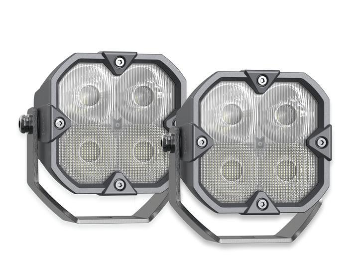 4 CLEAR OSRAM5 LED 5 WATT BULBS; 3” FLUSH MOUNT CUBE; 20 WATT; 90 DEGREE FLOOD BEAM; 2400 RAW LUMENS/ 1500 EFFECTIVE LUMENS; SET OF TWO (2) PN: T8L2X2CFFMBPR