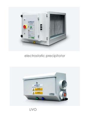 • electrostatic precipitator (ESP) to remove up to 98% or oil, grease and smoke particles. (See figure 3.)