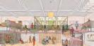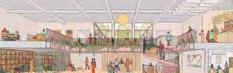 The hub includes flexible spaces that could be used for library/educational uses