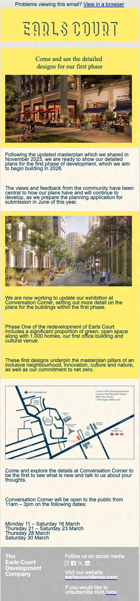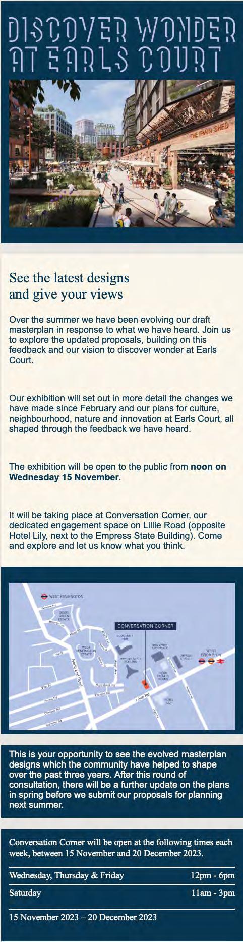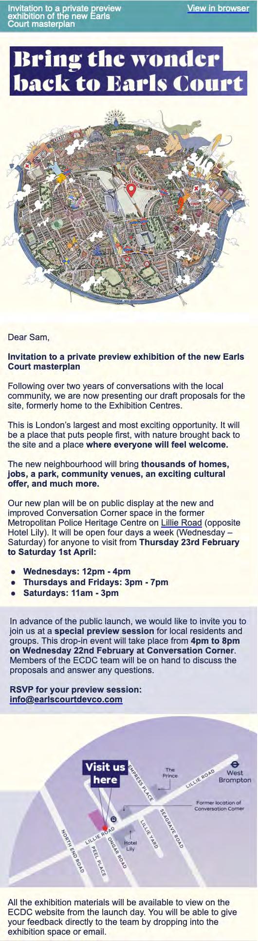 As a locally based business, ECDC has been consulting with the local community in and around Earls Court on the vision and plans for the redevelopment of the former Exhibition Centres Site for the last four years. This consultation process is part of a much broader commitment to deliver genuine long-lasting community benefit. On the following page we summarise our engagement activities.