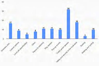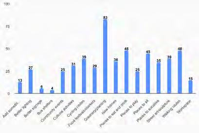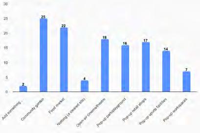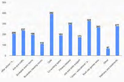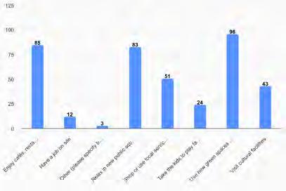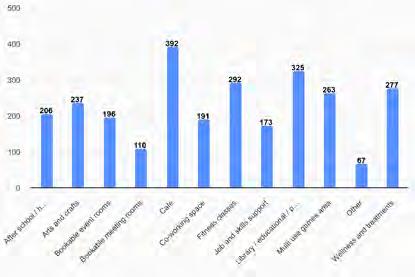 Community Hub uses: the most popular preferences were for a café; a library/ educational/public information facility; and fitness classes.