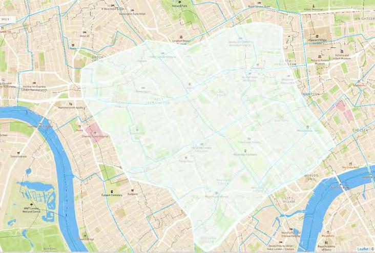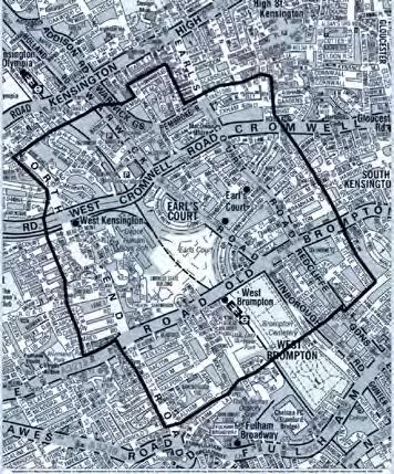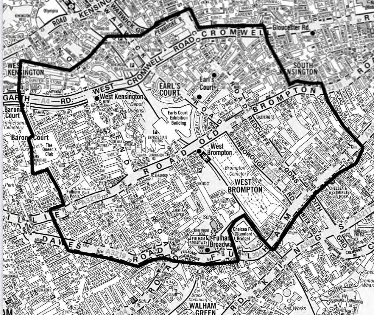 The LBHF and RBKC administrative boundary bisects the Site along a northwest-southeast axis from Lillie Road to West Cromwell Road.