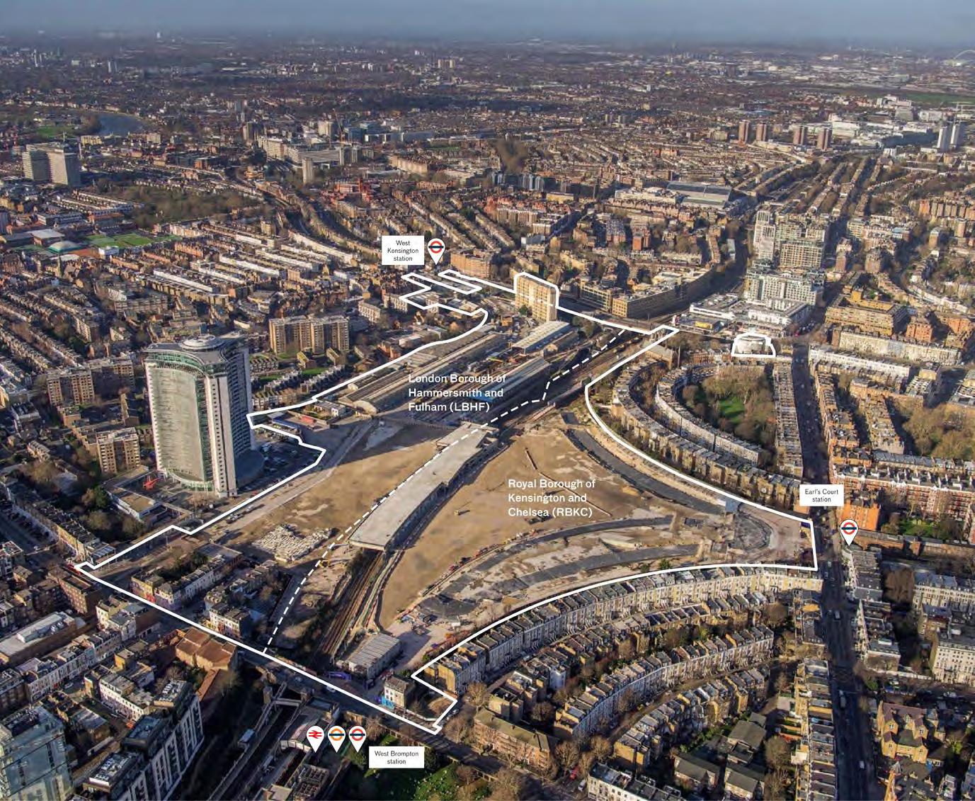 The Site occupies an area of approximately 18 hectares (179,956 sq m) and is located in both the London Borough of Hammersmith and Fulham (LBHF) and the Royal Borough of Kensington and Chelsea (RBKC), in West London. The Site area associated with the RBKC Hybrid Planning Application is approximately 8 hectares (78,561 sq m) and the Site area associated with the LBHF Hybrid Planning Application is approximately 10 hectares (101,395 sq m).