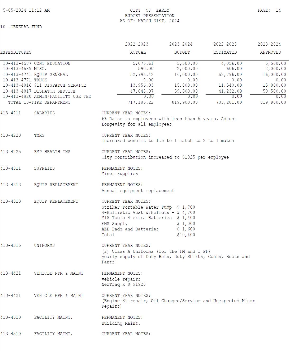 2023-2024 ADOPTED BUDGET City of Early, TX | FY2023-2024 Adopted Budget 13