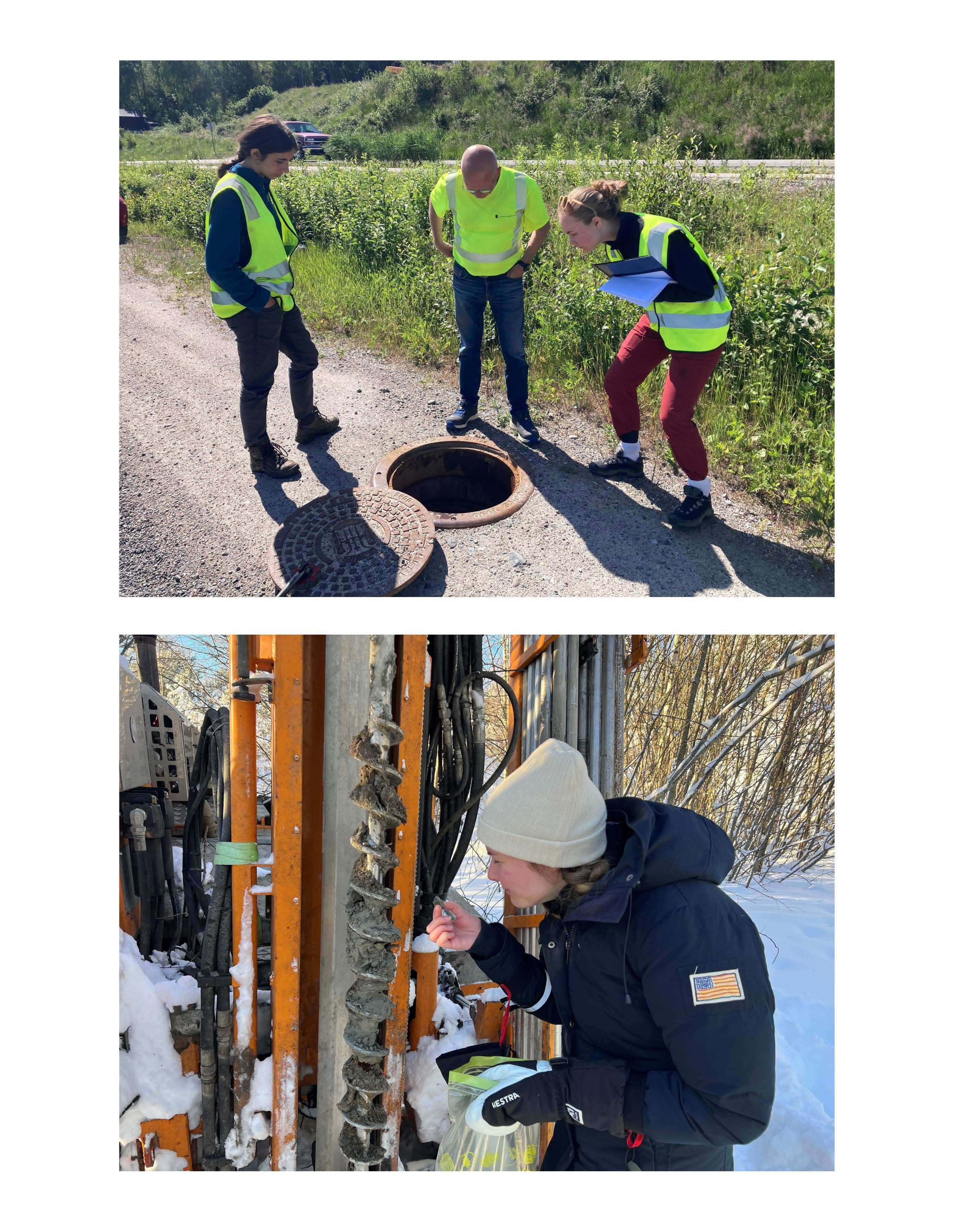 We collaborated with researchers Dr. Nicolas Forquet and Dr. Remi Clement from INRAE, Lyon. They constructed a prototype of a field instrument for electrical resistivity measurements, OhmPi. We plan to use this to test the spatial development of water and gas in closed landfills. Two internship students from France, Sarah Francia and Loic Trutin from Ecole Nationale Supérieure Agronomique de Toulouse and École nationale du génie de l'eau et de l'environnement de Strasbourg respectively, participated. Sarah engaged in fieldwork at landfills with earthresQue partners Skien and Lillestrøm municipalities. Loic followed up on PFAS cell leachate treatment at Perpetuum's facility near Tromsø.