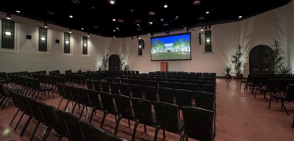 This grand space is versatile. It transitions easily to accommodate lectures, meetings, performing arts events and transforms beautifully into elegant space for receptions and dinners.