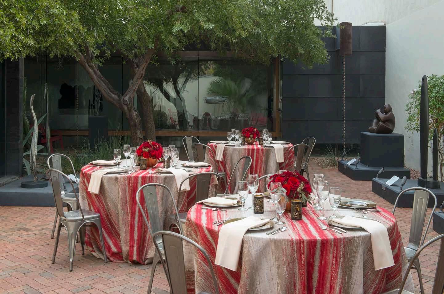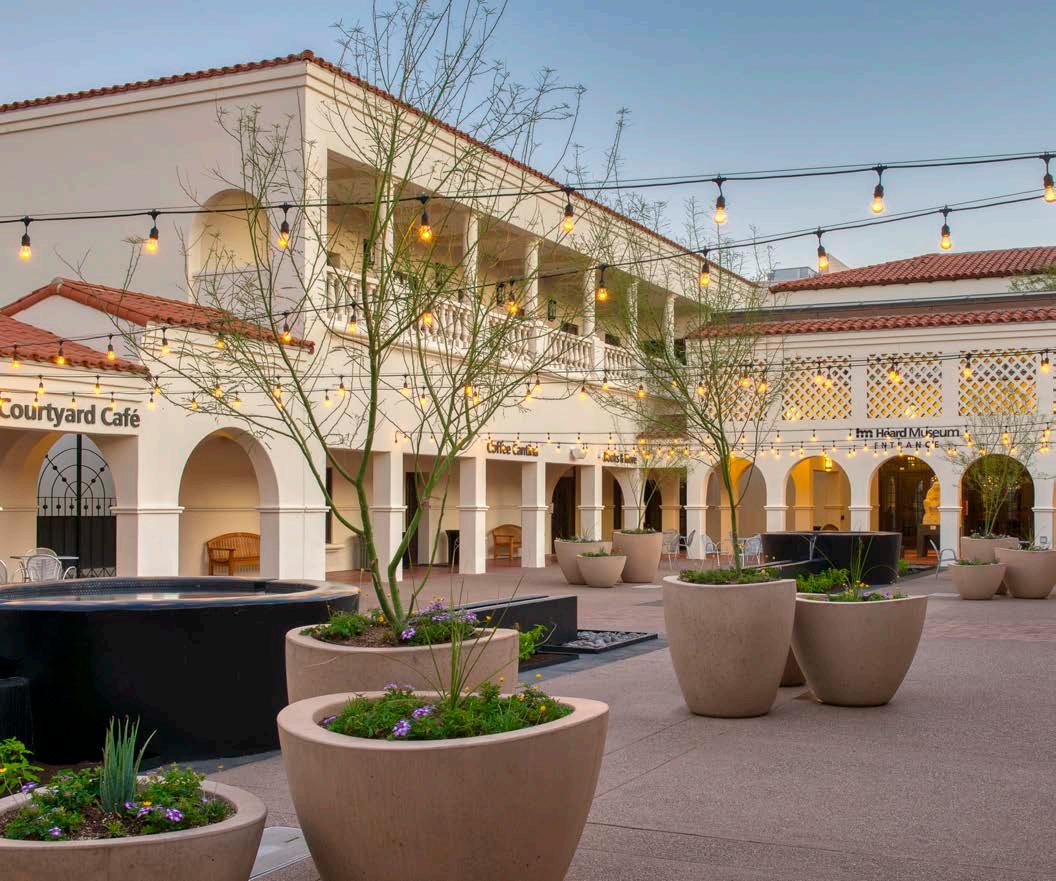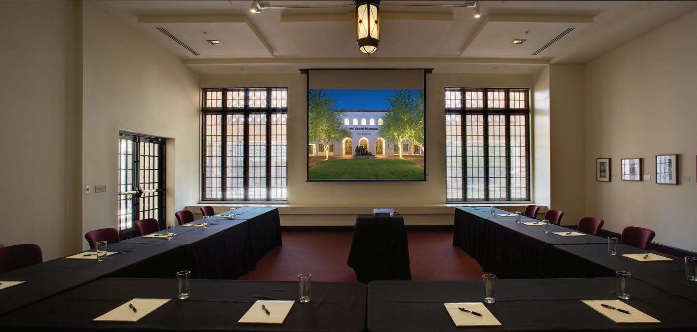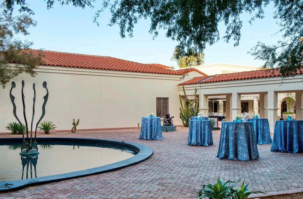 A sprawling courtyard offering a panoramic view of the Heard Museum grounds, sprinkled with sculptures from our famed collection. The lush lawn, trees and arched walkways are beautiful at dusk against the desert sky. Ideal for cocktail receptions, dinners and wedding ceremonies.