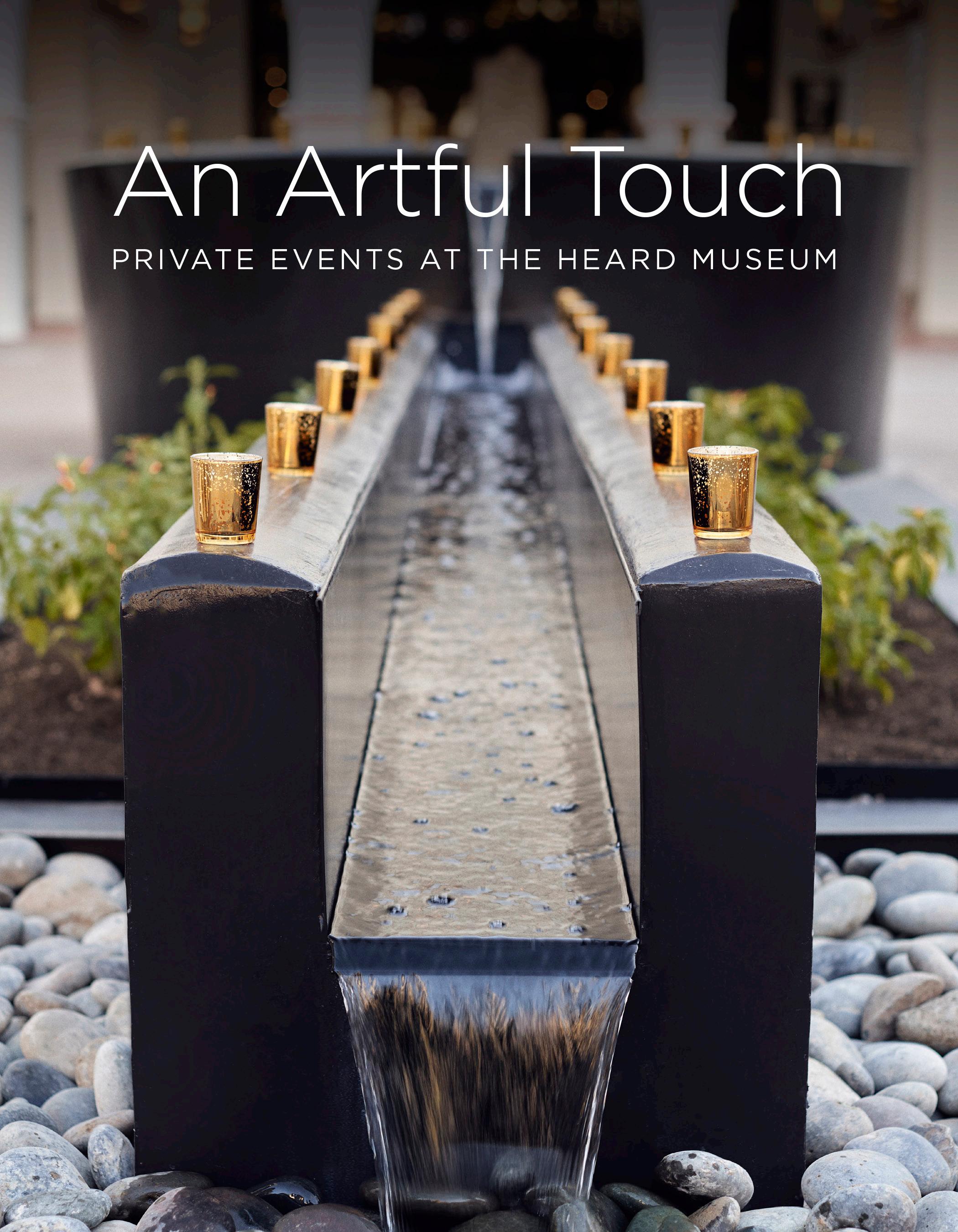 Beautiful surroundings make the Heard Museum the perfect setting for private gatherings from small and intimate to grand and elaborate. Graceful Spanish Colonial architecture, elegant courtyards and tranquil fountains provide a setting of unparalleled character and charm; the ideal backdrop for receptions, dinners, and weddings. Our meeting rooms offer state-of-theart technical facilities for conferences, presentations and retreats.