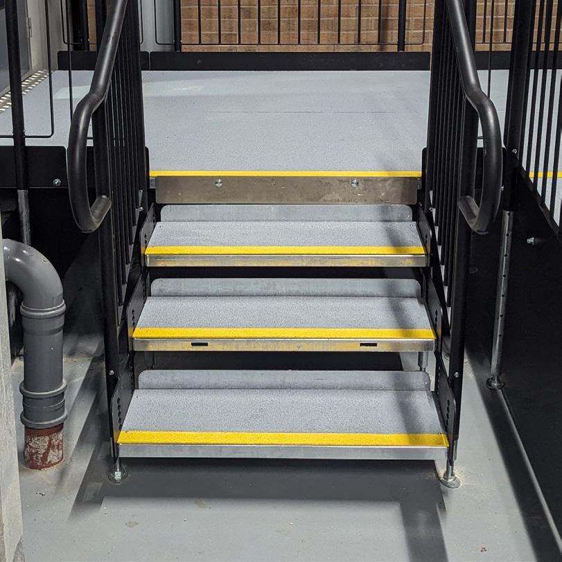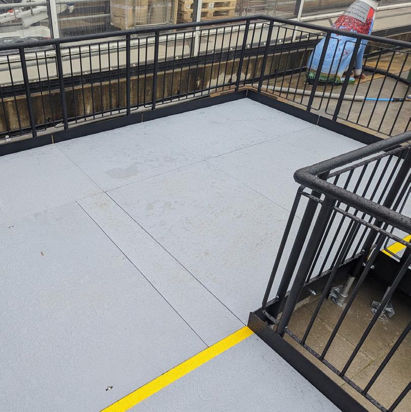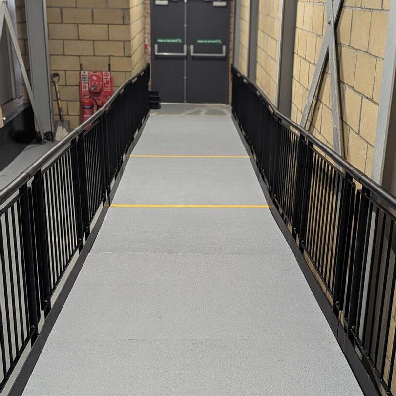Our GRP surface is 6mm thick, extremely tough, durable and designed with enhanced slip resistance. Making it practical for use in high footfall environments such as hospitals, museums, and airport installations. Available in grey and black as standard, the edges can be highlighted to signal the start/end of a ramp or platform as required.
