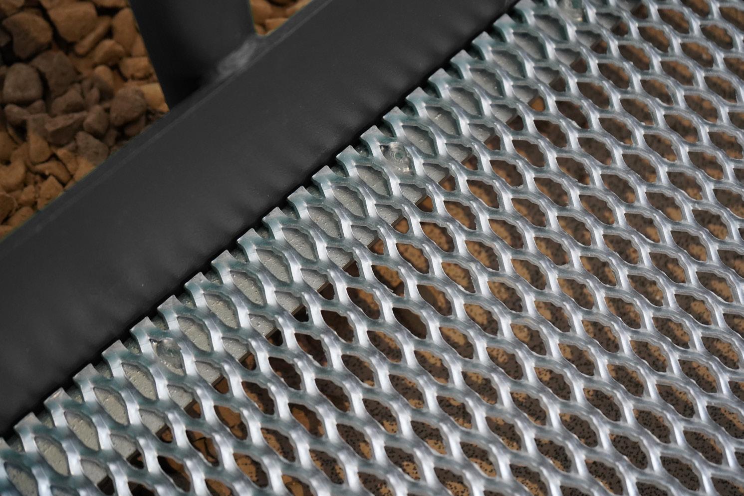 Expanded metal is produced by an expanding machine, which turns solid metal sheets (in our case steel) into an expanded metal mesh. The expanding machine is fitted with a knife which determines the pattern for the mesh. As the metal is fed through the expanding machine, it is cut and stretched simultaneously using a pressured slitting and stretching process. The slits created by the knife allow the metal to be stretched, which produces uniform holes. This mesh is then welded onto the steel frame to create our platforms that make up the ramps. These platform sections are then hot dip galvanised, a process that involves dipping into a bath of molten zinc. This provides an extremely effective barrier to all weathering and totally prevents rusting.