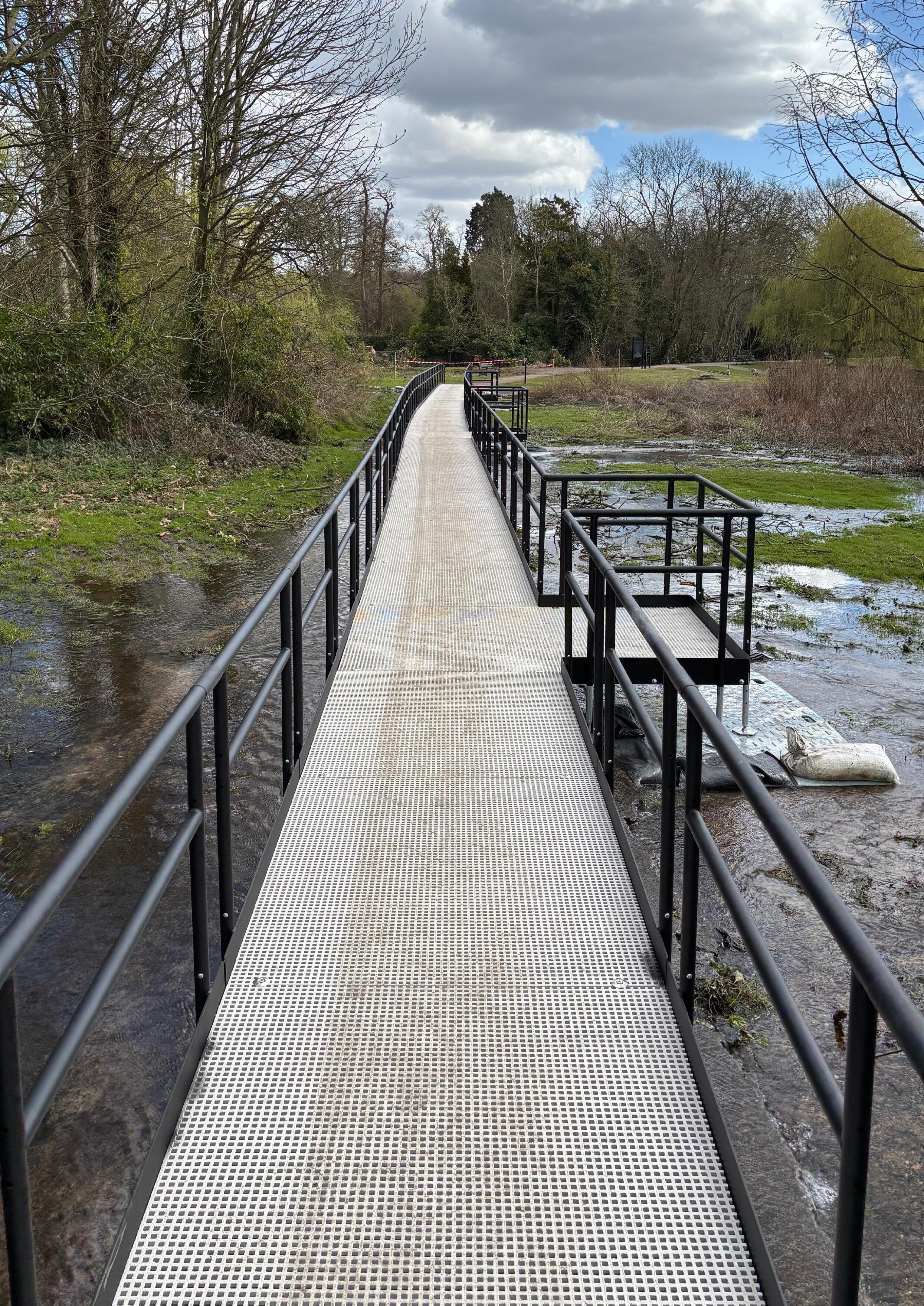 The GRP surface is fixed to a specially designed galvanised steel frame using a single part polyurethane sealant and rivets, providing an extremely strong solution. These platforms can be supplied readymade, or can be delivered separately as a sheet and frame, whereby they can be installed onsite.