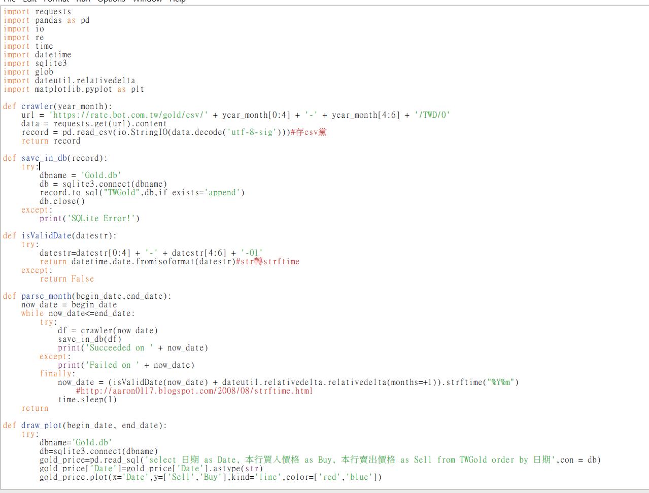 自台銀https://rate.bot.com.tw/gold/passbook下載2019年1月至2020年7月的 歷史黃金存褶牌價;所有月份資料存入sqlite3的資料庫Gold.db,匯整成單一 資料表名稱TWGold;繪製折線圖。