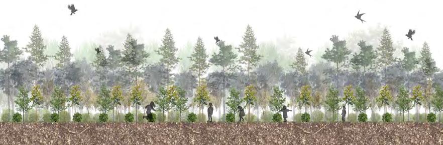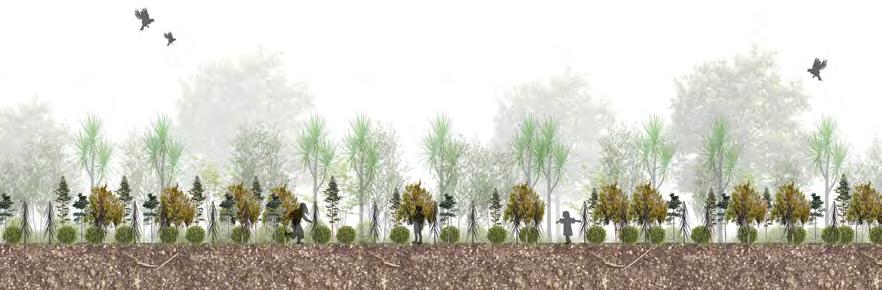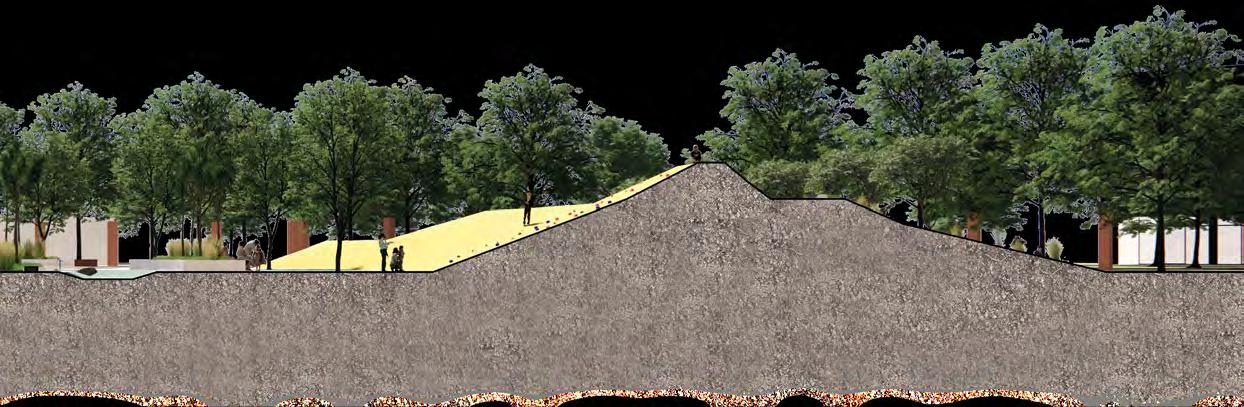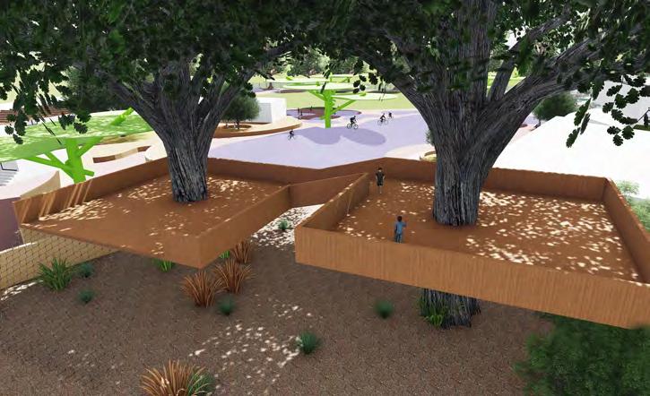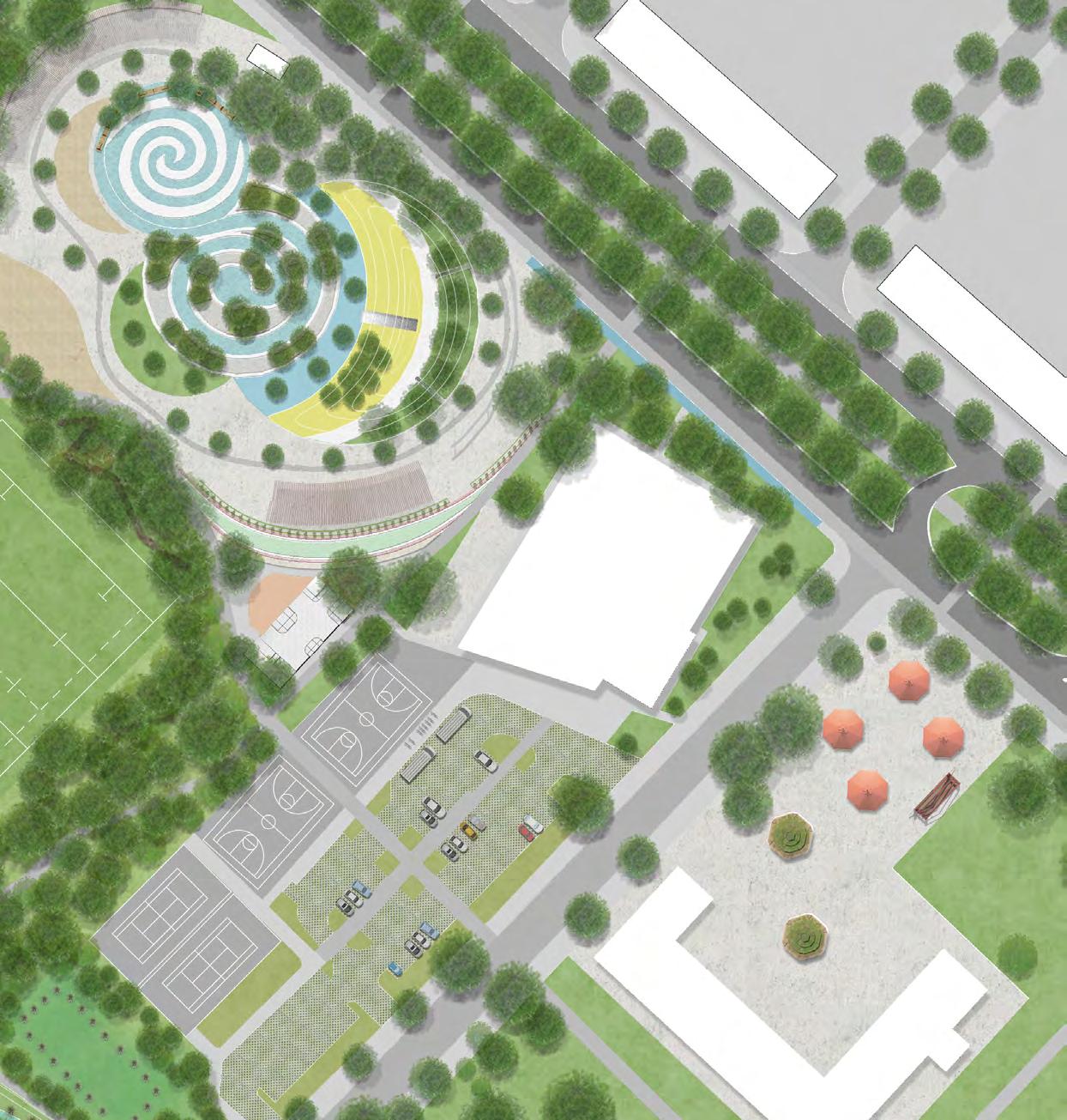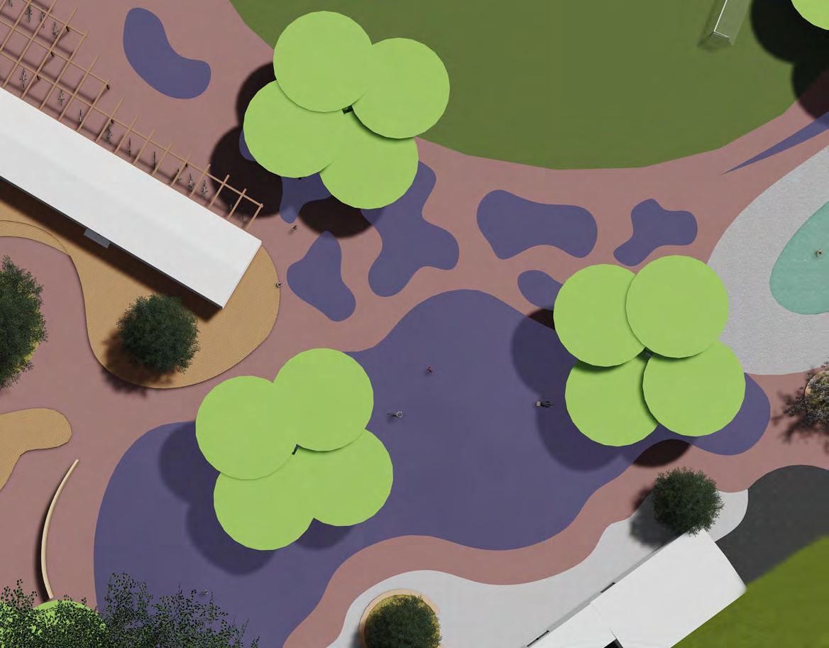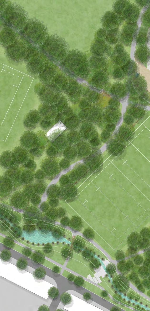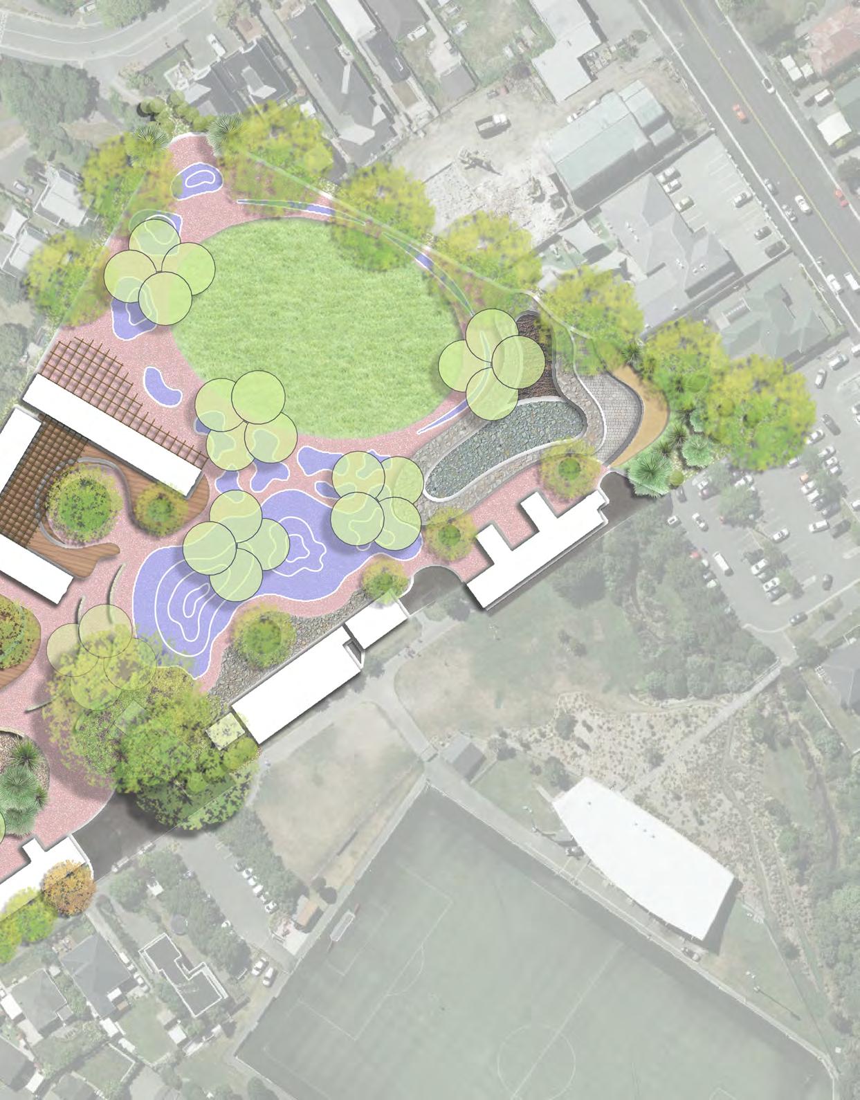 The area of the intermediate plan is located in Linwood Park. The design was driven by creating a playful experience through the site. Nature not only inspired the design but also being part of it. The design encourages users to be creative and adventurous and enjoy nature and sports.