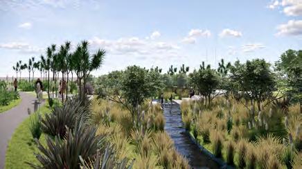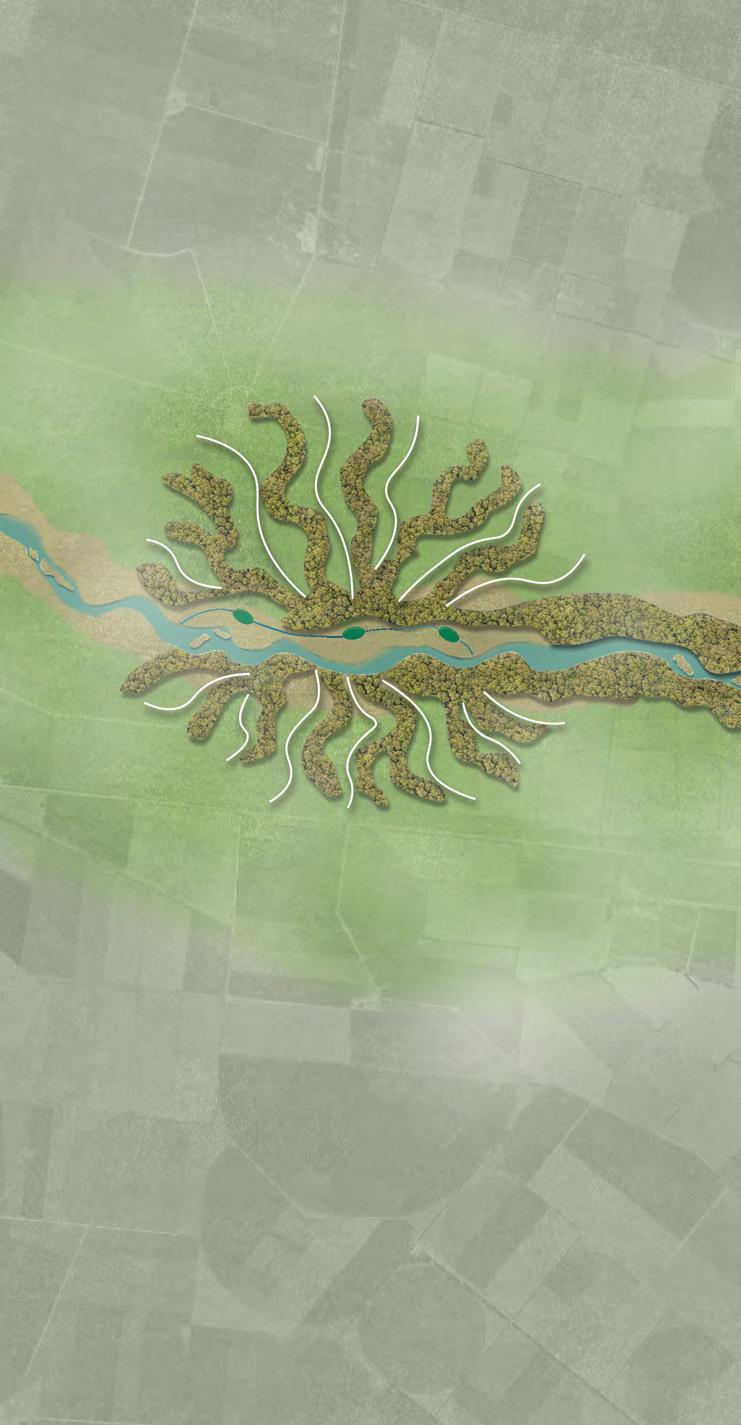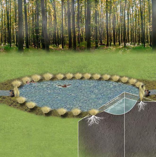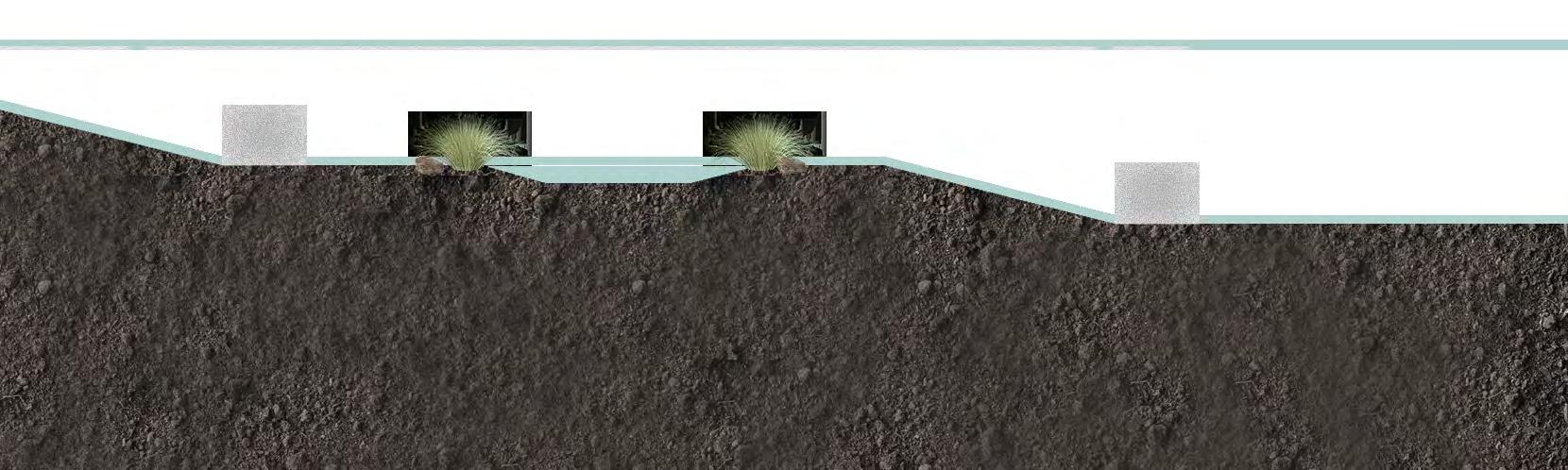 • To naturalise the existing waterway with plants to create a green corridor and engage it with other activities on the site.