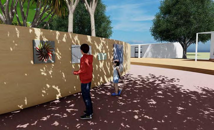 Recycling and repurposing materials from pre-existing built forms and the waste from retail or industry on manufacturing customised features on the site. Creating a strong sense of place shows Linwood's characteristics, which the public could easily recognise. It would unite the local community firmly and give the visitor from outside Linwood a quick and straightforward expression of the significance of the place. The material selection was considered to deal with the shortage and rising prices in the local market, support local businesses and reduce the environmental effects of transportation. Sustainability Cultural Identity Locally sourced Playful Landscape Linwood Culture Surface Material Artificial Play Playing With Water Hard Ground Surface Hard Ground Surface Other materials Lighting Street Gallery Custom Drain Cover Keas Lane Soft Ground Surface Children are targeted as future users while designing. Safety was prioritised in choosing the surface material in the activity areas. The soft surface ground cover was selected for the areas with level changes, and anti-slip concrete finishes were chosen for the place that could be wet. The play features were mostly customised. The ones that the local suppliers could not provide would be replaced with their existing products with similar functions. This part of the material aims to reflect Linwood culture's significance by showing Linwood Keas Rugby League Club, creativities from the local communities and students in the school, and the unique native plant and animal species. Recycled posts and beams Source: Hard Wood Timbers New Zealand Stainless steel darin with anti slip grates Source: ACO Buildline Solar Power water proof LED outdoor ground lamp Source: Bunning's NZ Custom solar Power water proof LED light pole Source: Steelgal NZ Custom solar Power water proof LED light pole Source: Steelgal NZ White concrete with towel finish Source: Permacolour Sand colour concrete with towel finish Source: Permacolour Coastal colour poured rubber Source: Numat Rec Celeste colour poured rubber Source: Numat Rec Wood Chip Source: Numat Rec Sand colour concrete with exposed aggregate finish Source: Permacolour White concrete with towel finish Source: Permacolour Blue concrete with exposed aggregate finish Source: Permacolour Blue concrete with towel finish Source: Permacolour Ball sprinkler Source: Pool Stuff Sprinkler corridor Source: Pool Stuff Playful fountain Source: Pool Stuff Red concrete with towel finish Source: Permacolour Green concrete with towel finish Source: Permacolour Black concrete with towel finish Source: Permacolour During the day During the day During the night During the night Custom laser cutting stainless steel trench drain cover Source: Priest Sheet Metal & Plate