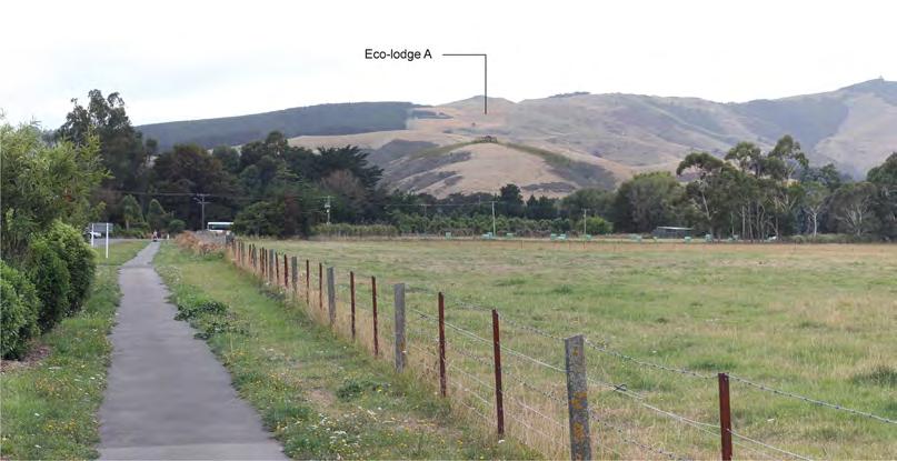 24. From the viewpoints along Old Tai Tapu Road and Rhodes Road are all sitting at the bottom of the ridges on the south of the property. The proposed lodge and site is with different visibility levels from the 4 viewpoints. (As shown in figure 4.1, 4.2, 4.3, 4.4 from page 7 to 10; figure 5.1, 5.2, 5.3, 5.4 from page 12 to 15 in Graphic Attachment and Appendix B on page 10)