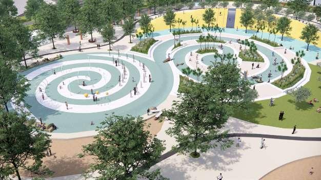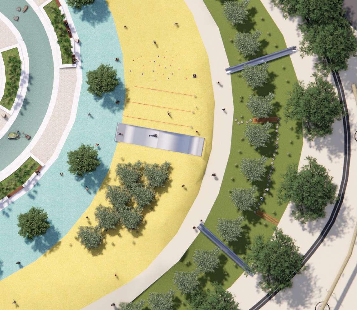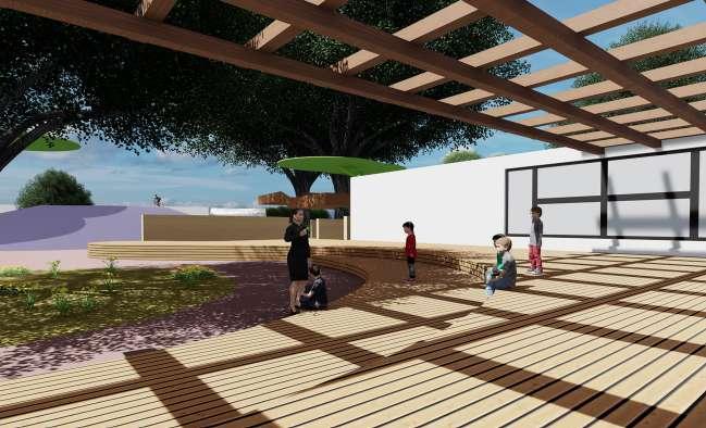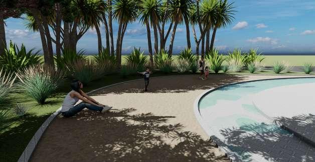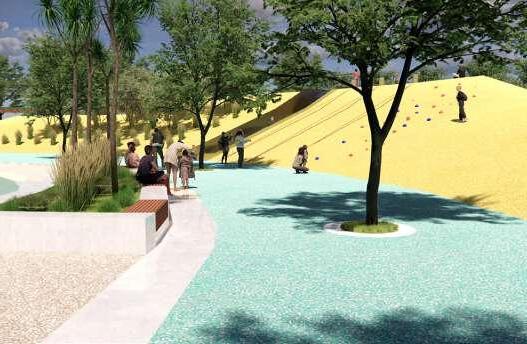 The detail design shows the area of Sand dune Playground. The design is aimed to reflect the sand dune landscape with vegetation, landform, colour palette, and activities. A water management system will be introduced to make the most of the water in the playground.