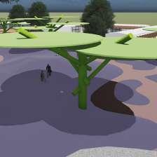 It is built on the two huge Oak trees at the entrance of the school. Those two trees provide almost 90% shade coverage all day long. It uses net climbing as access approach.