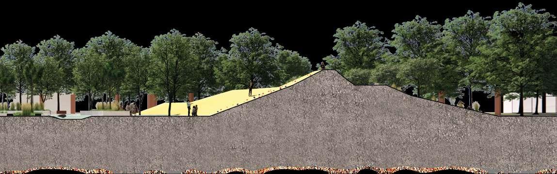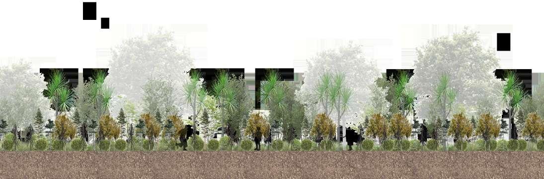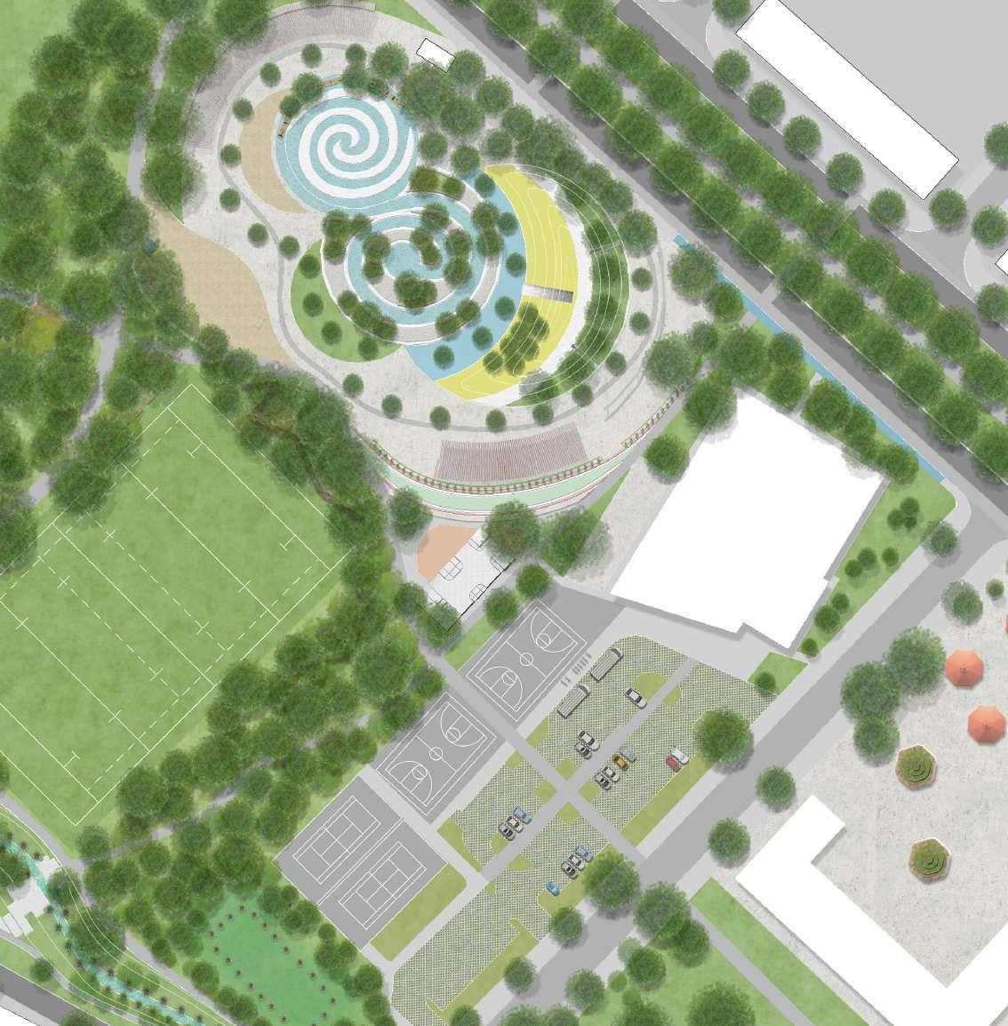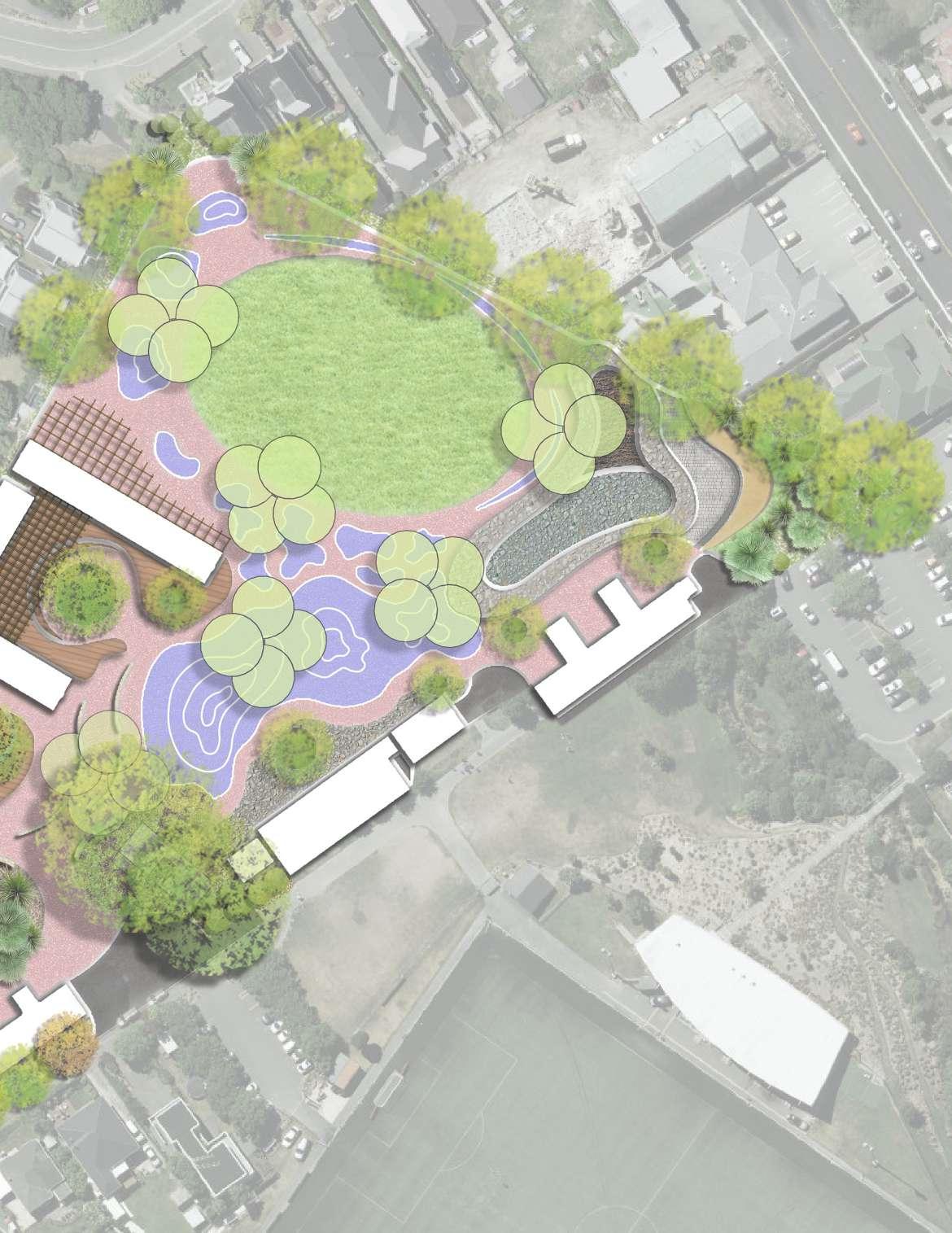 The area of the intermediate plan is located in Linwood Park. The design was driven by creating a playful experience through the site. Nature not only inspired the design but also being part of it. The design encourages users to be creative and adventurous and enjoy nature and sports.