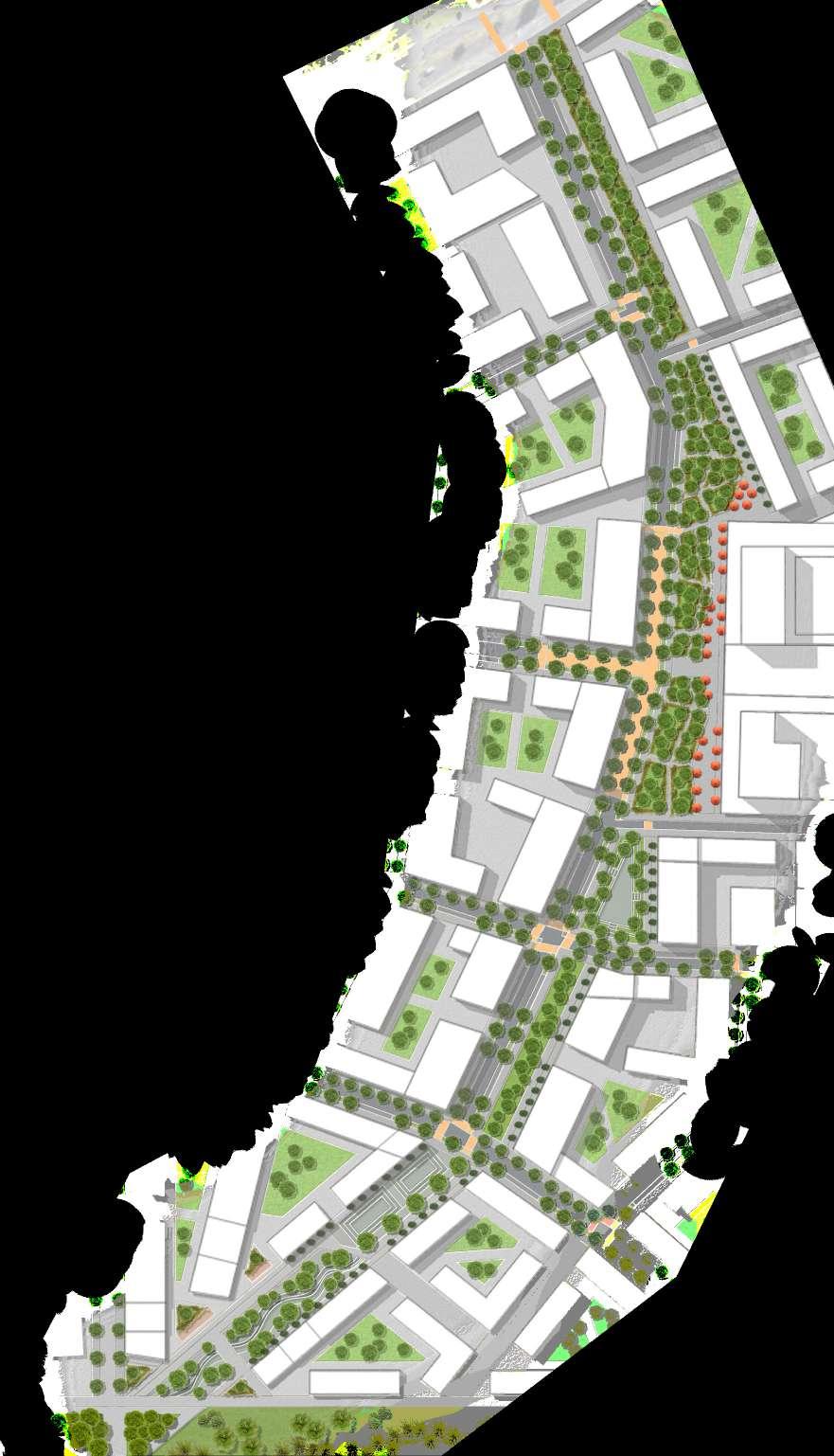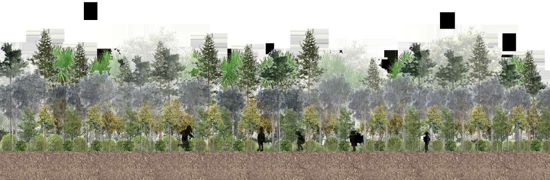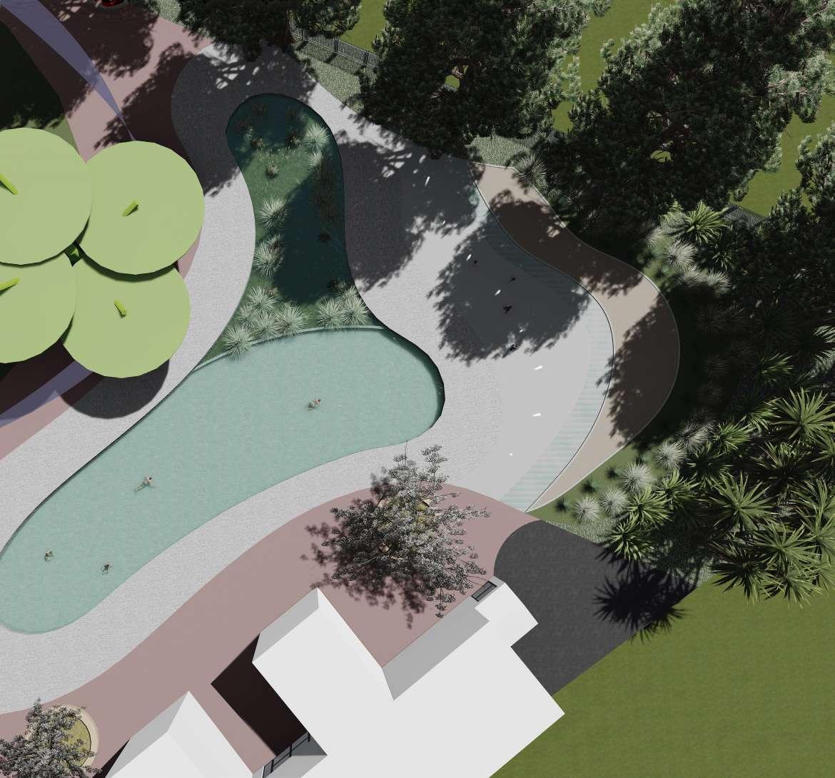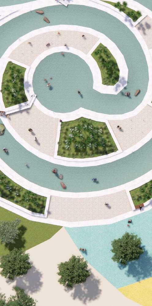 The area of the intermediate plan is located in Linwood Park. The design was driven by creating a playful experience through the site. Nature not only inspired the design but also being part of it. The design encourages users to be creative and adventurous and enjoy nature and sports.