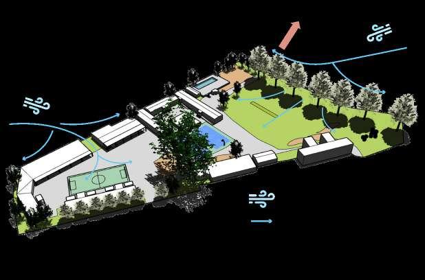 has been applied in the design. to north-east corner of the of active zone flow through form a stronger connection zone expands within well surrounding the active zone as coverage is given by shade plants