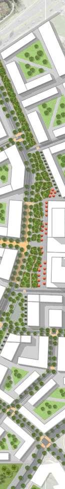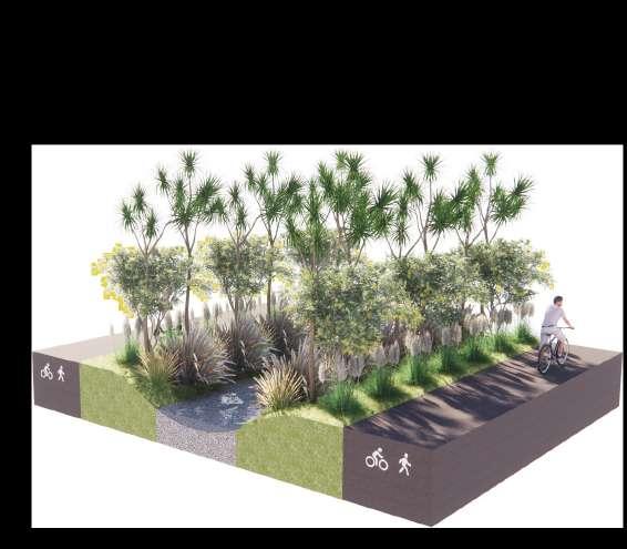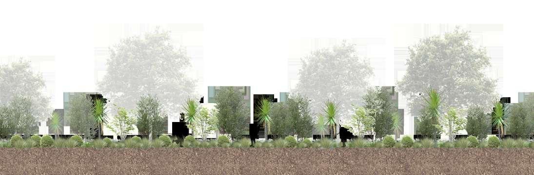 The green corridor along Linwood Ave and Tuam St was proposed To enhance the connection between Avon/Heathcote Estuary, Linwood, Avon River and Hagley Park. The plants in this area need to be hardy and tolerant to the pollution from the road. The plant selection contains exotic and native species. The fast-growing street trees would provide shade/shelter to the road users for a short time before the native species matures. The native plants were proposed to provide food to the wildlife and attract them to move along those corridors.